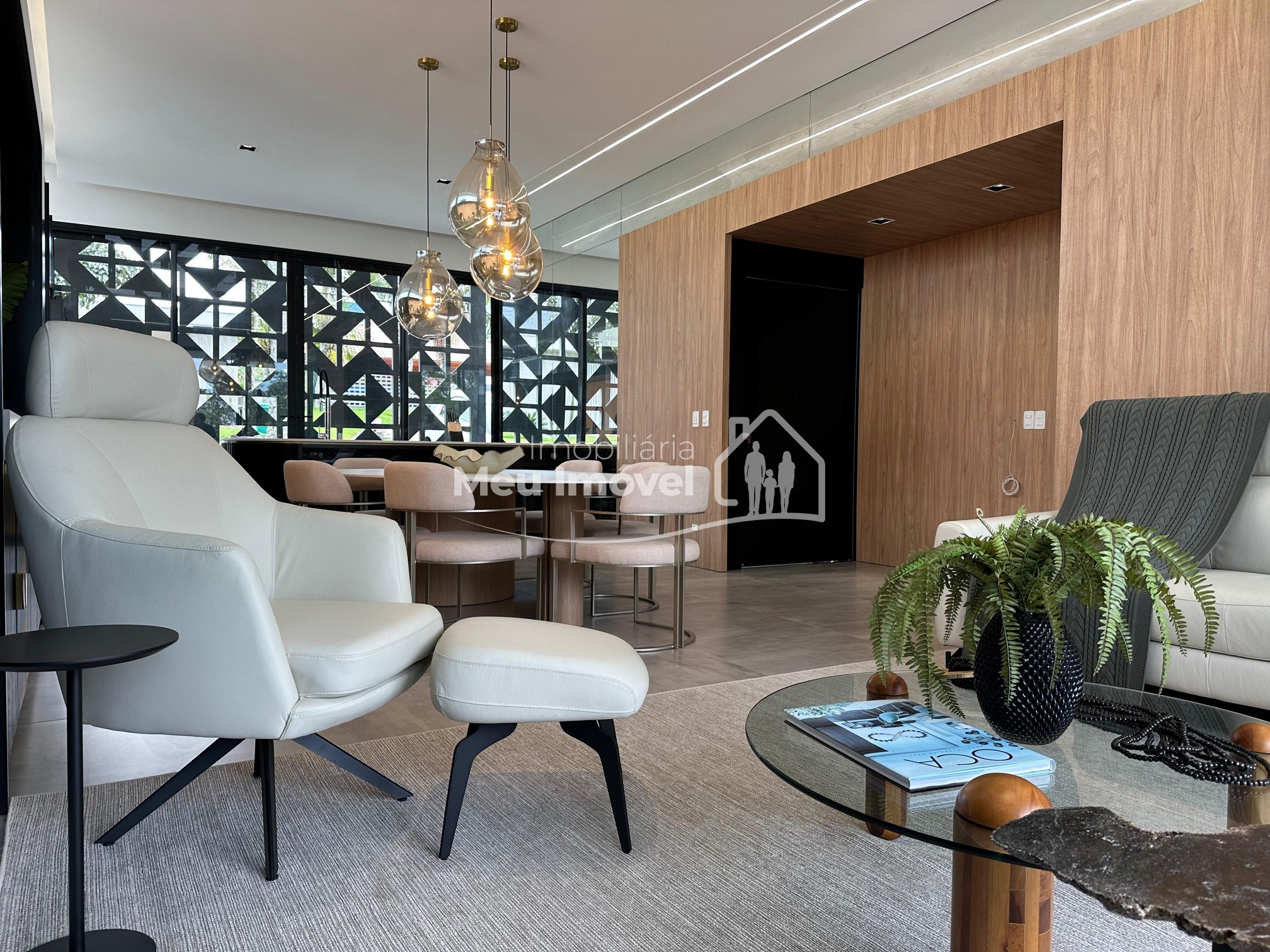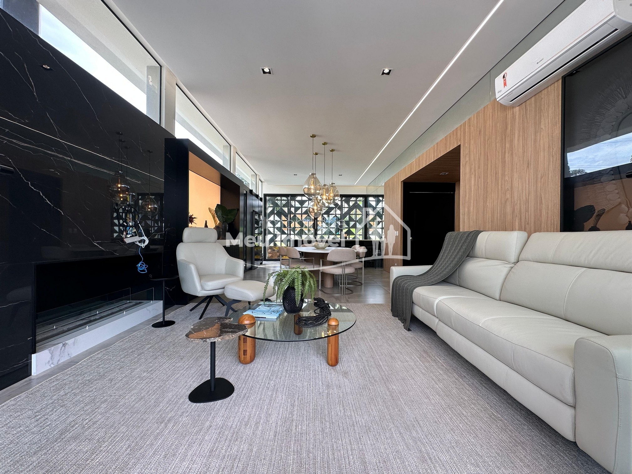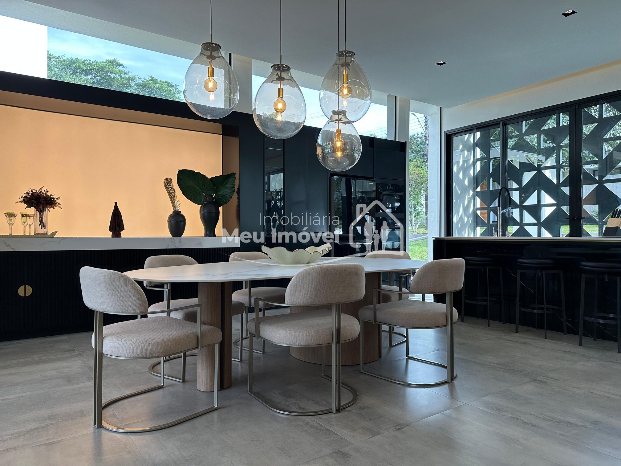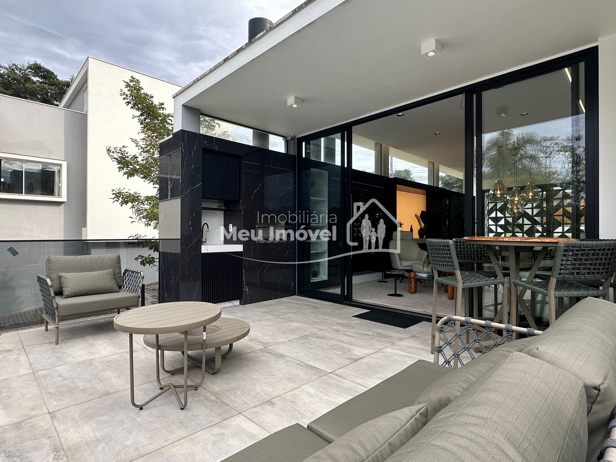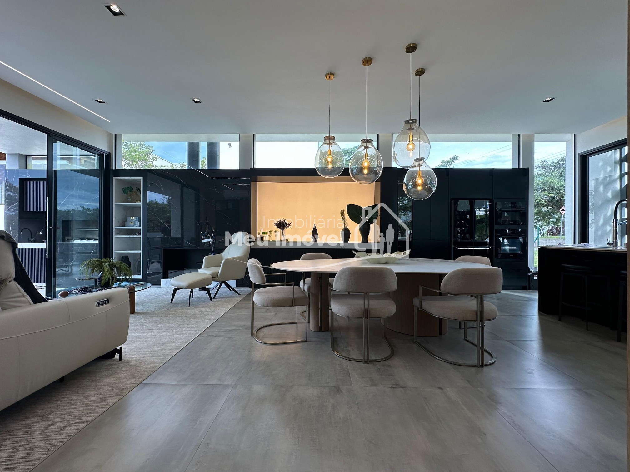 Pavimento térreo: 3 dormitórios (sendo um suíte com banheira de imersão, closet e sacada, 2 demi-suítes com sacada), área de serviço, área social integrada, espaço gourmet com churrasqueira a carvão, lavabo, varanda, garagem para 2 carros.