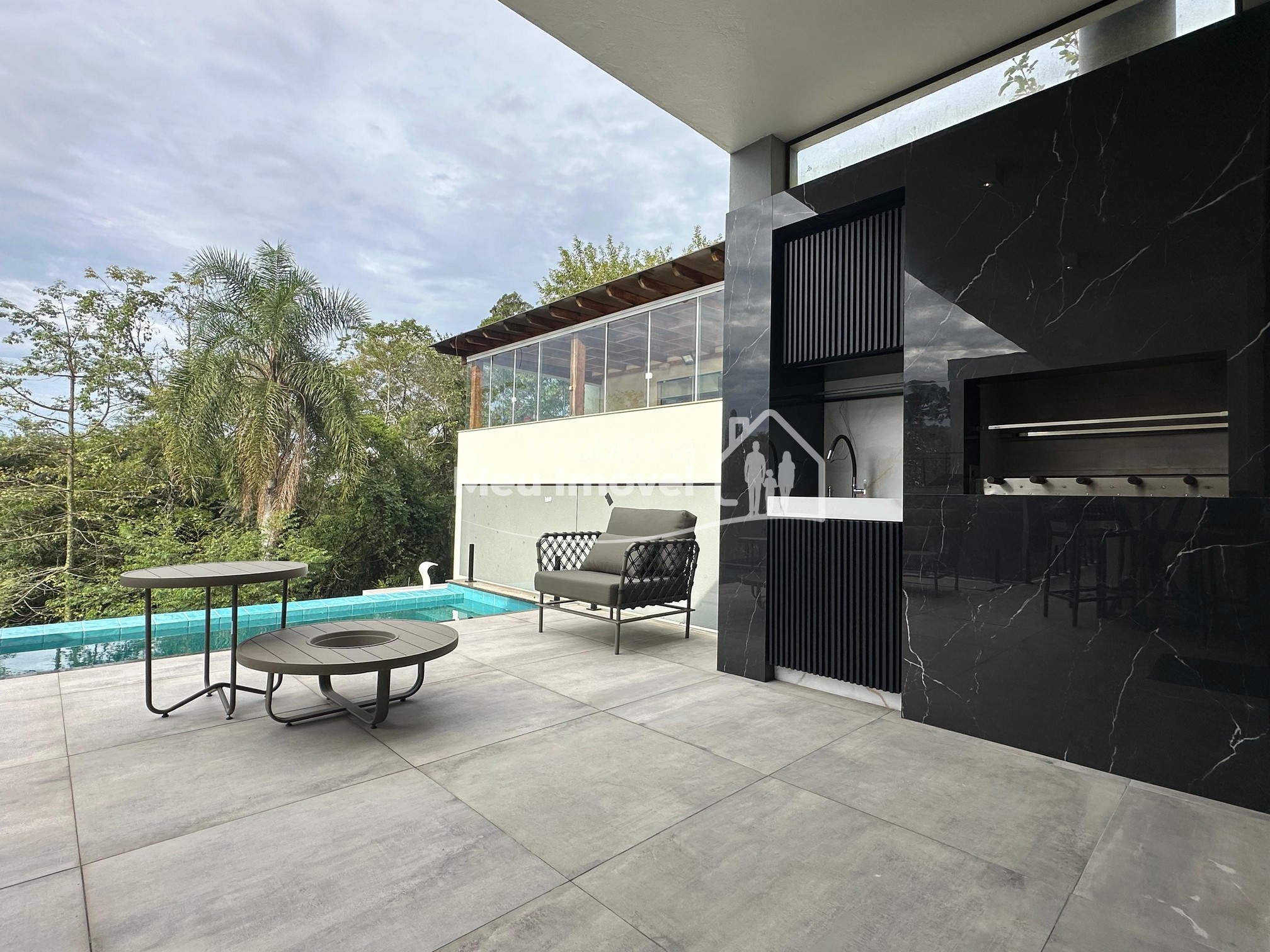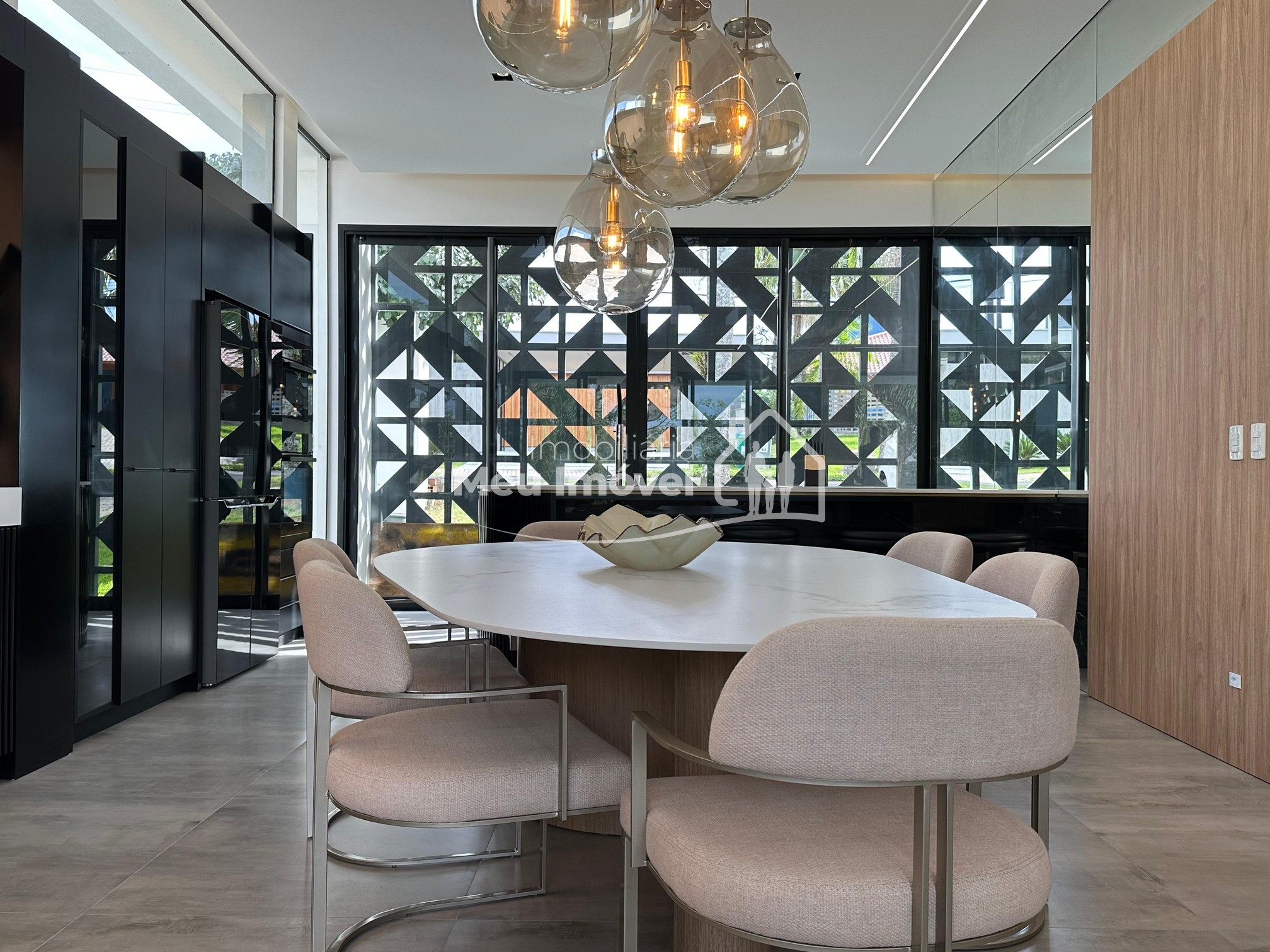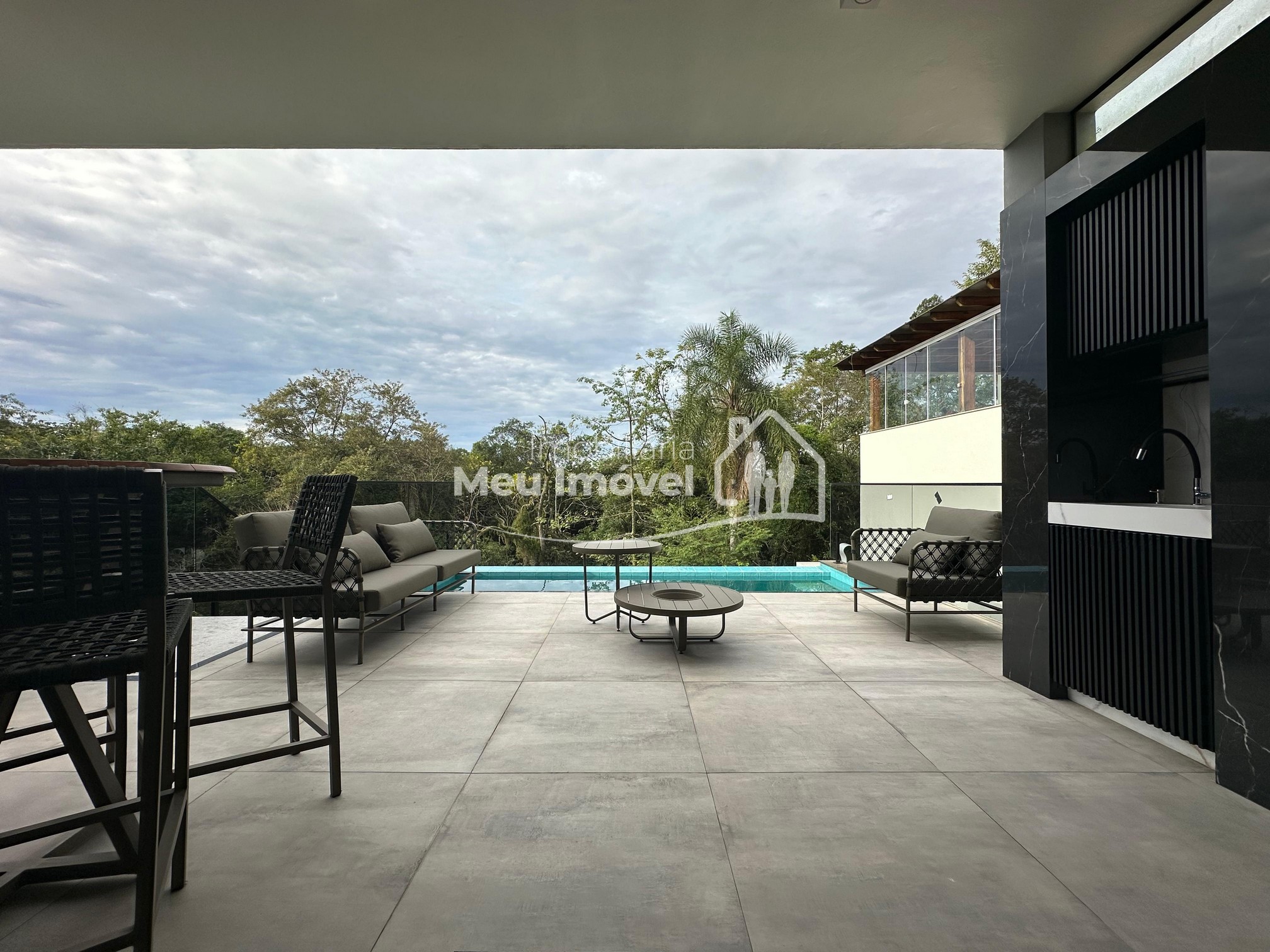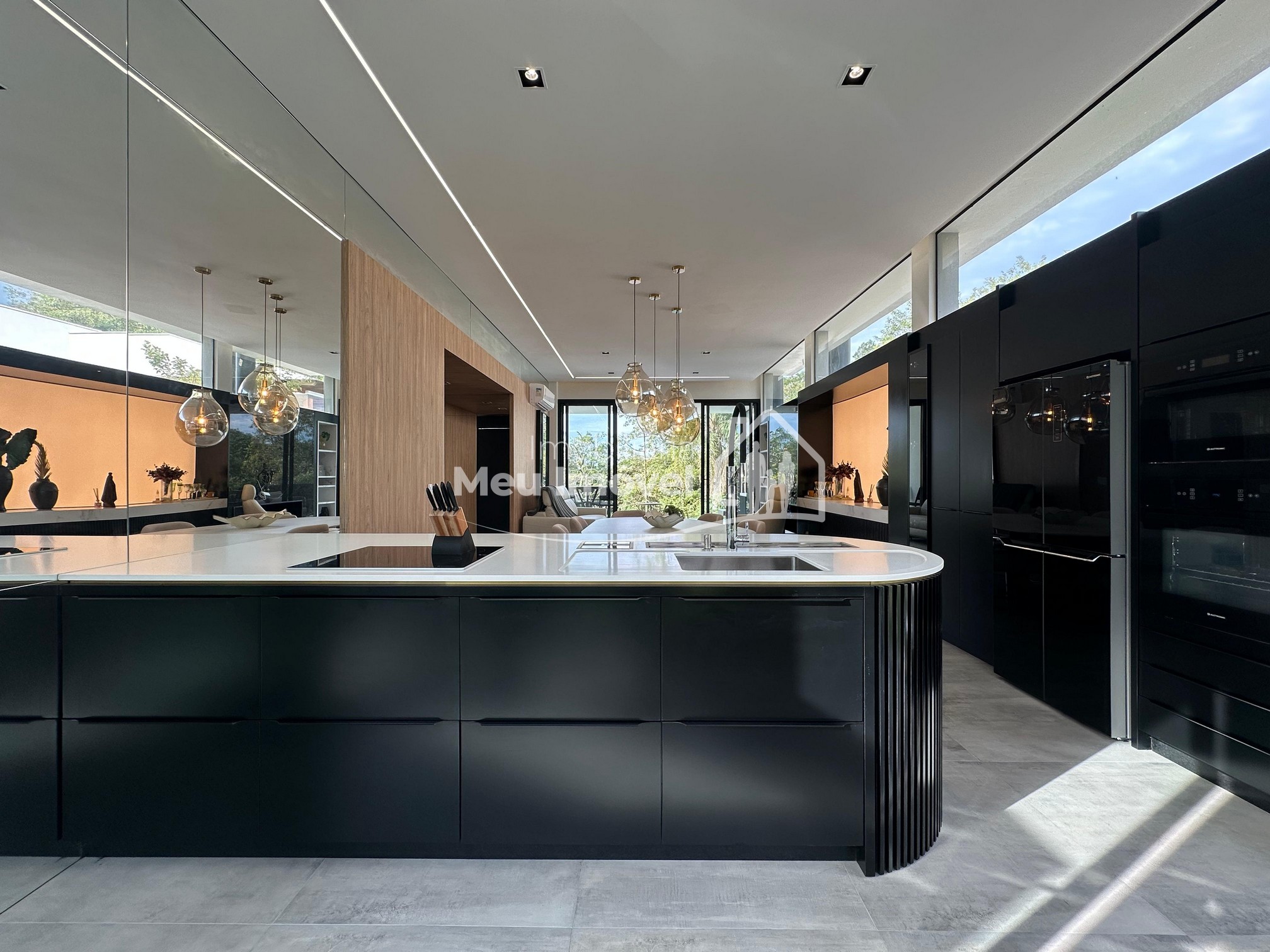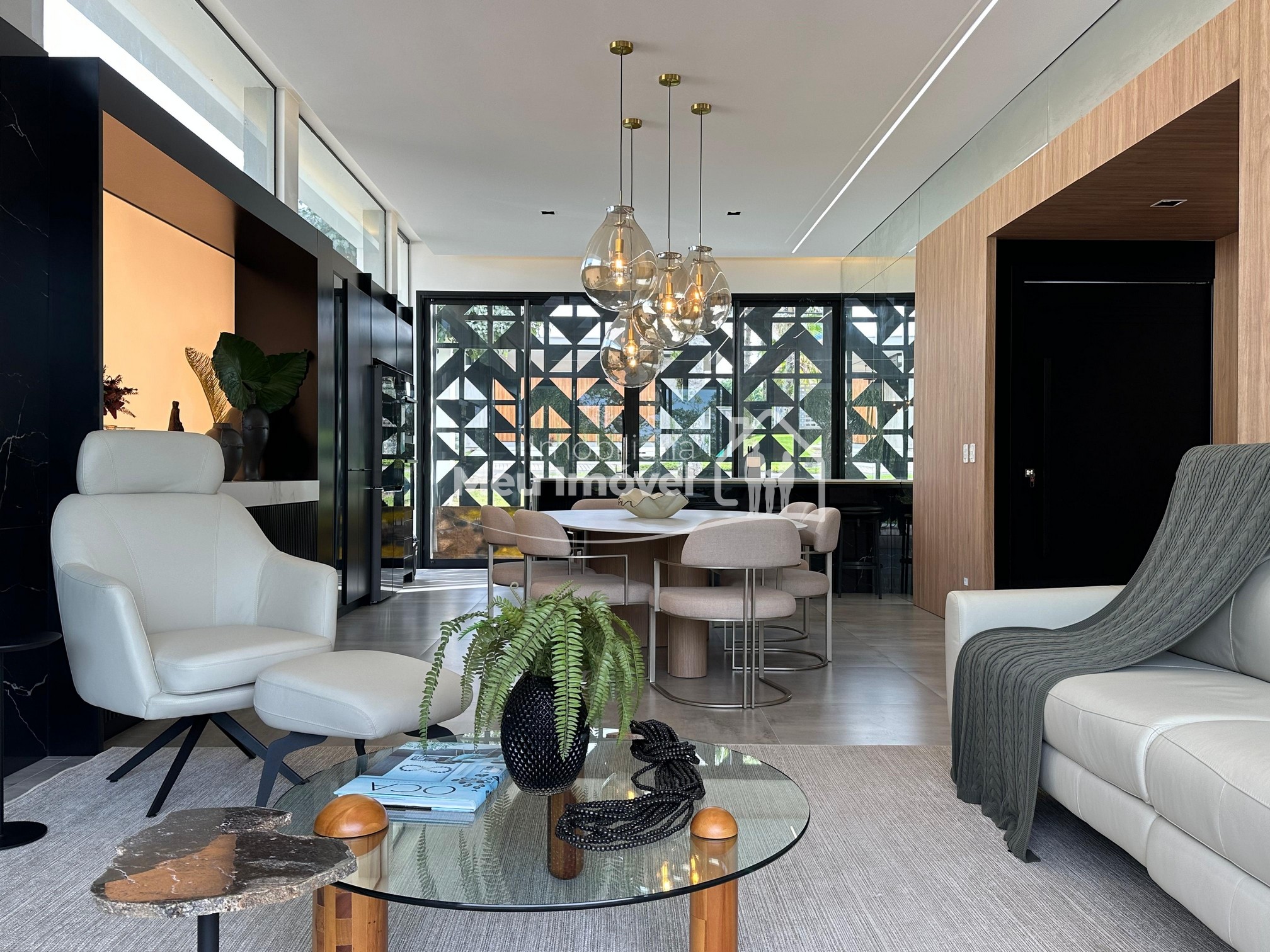 Pavimento térreo: 3 dormitórios (sendo um suíte com banheira de imersão, closet e sacada, 2 demi-suítes com sacada), área de serviço, área social integrada, espaço gourmet com churrasqueira a carvão, lavabo, varanda, garagem para 2 carros.