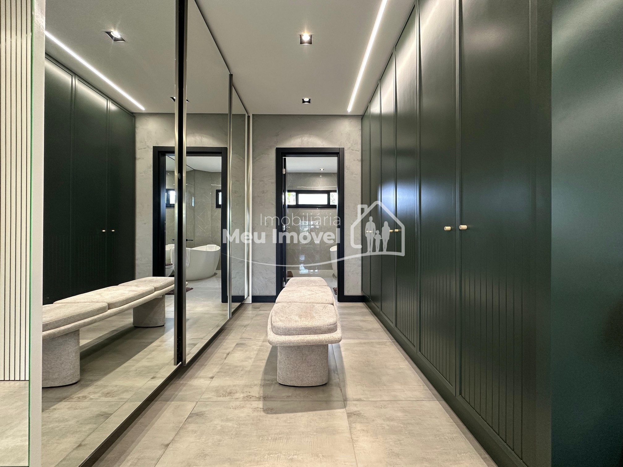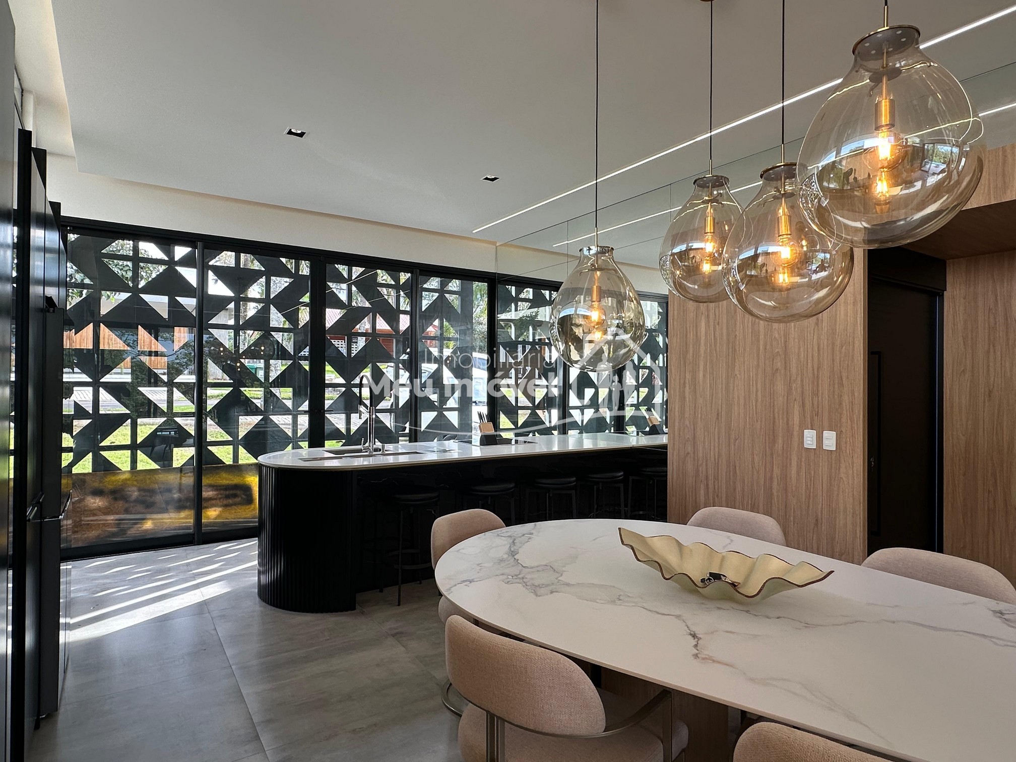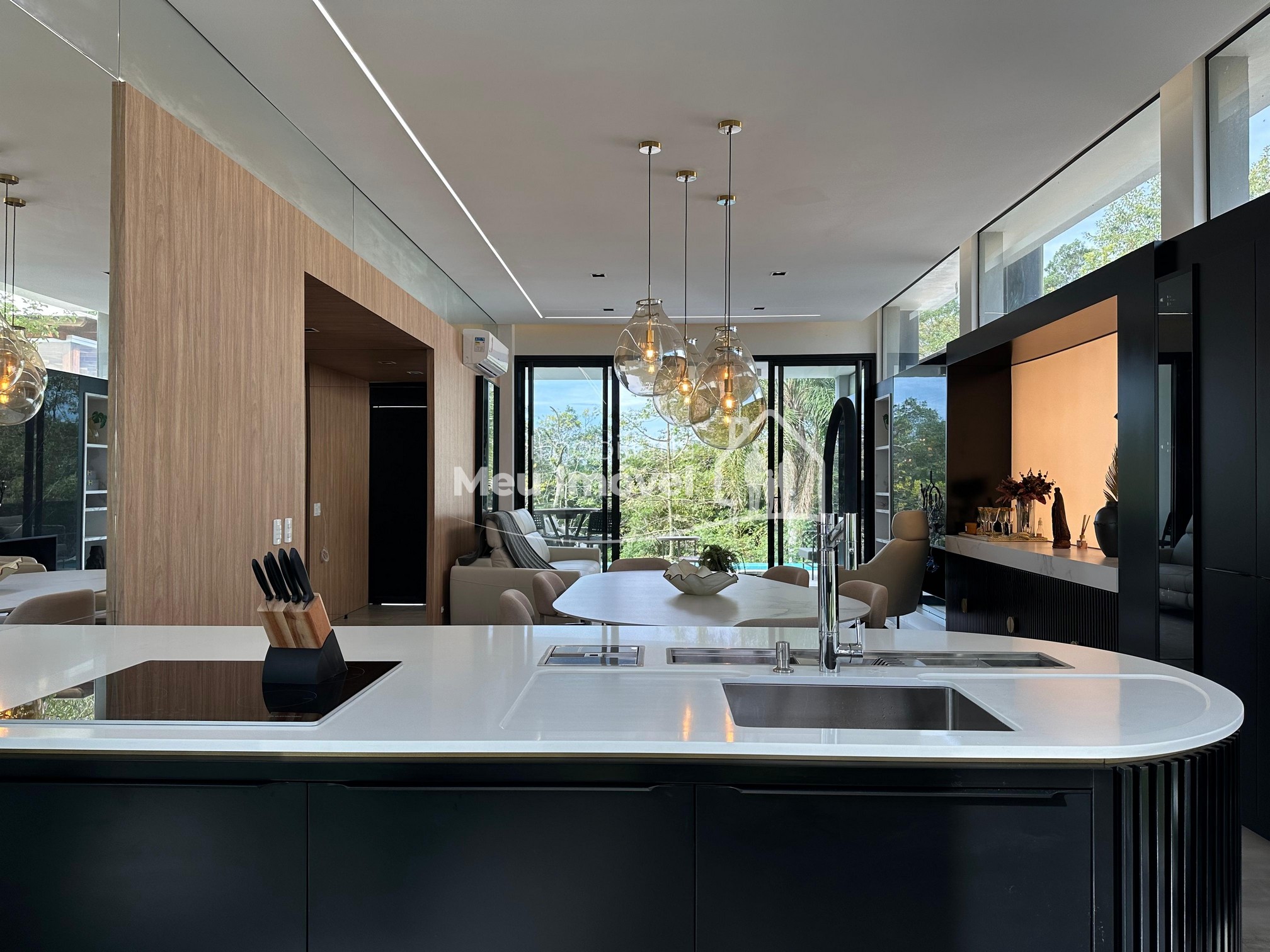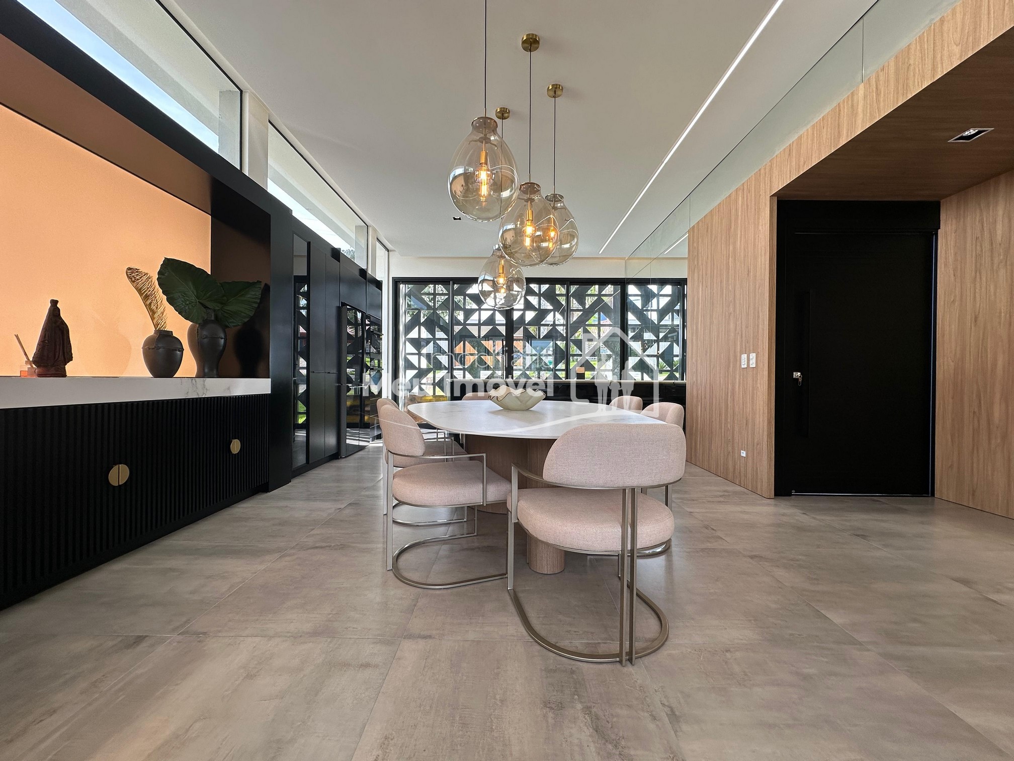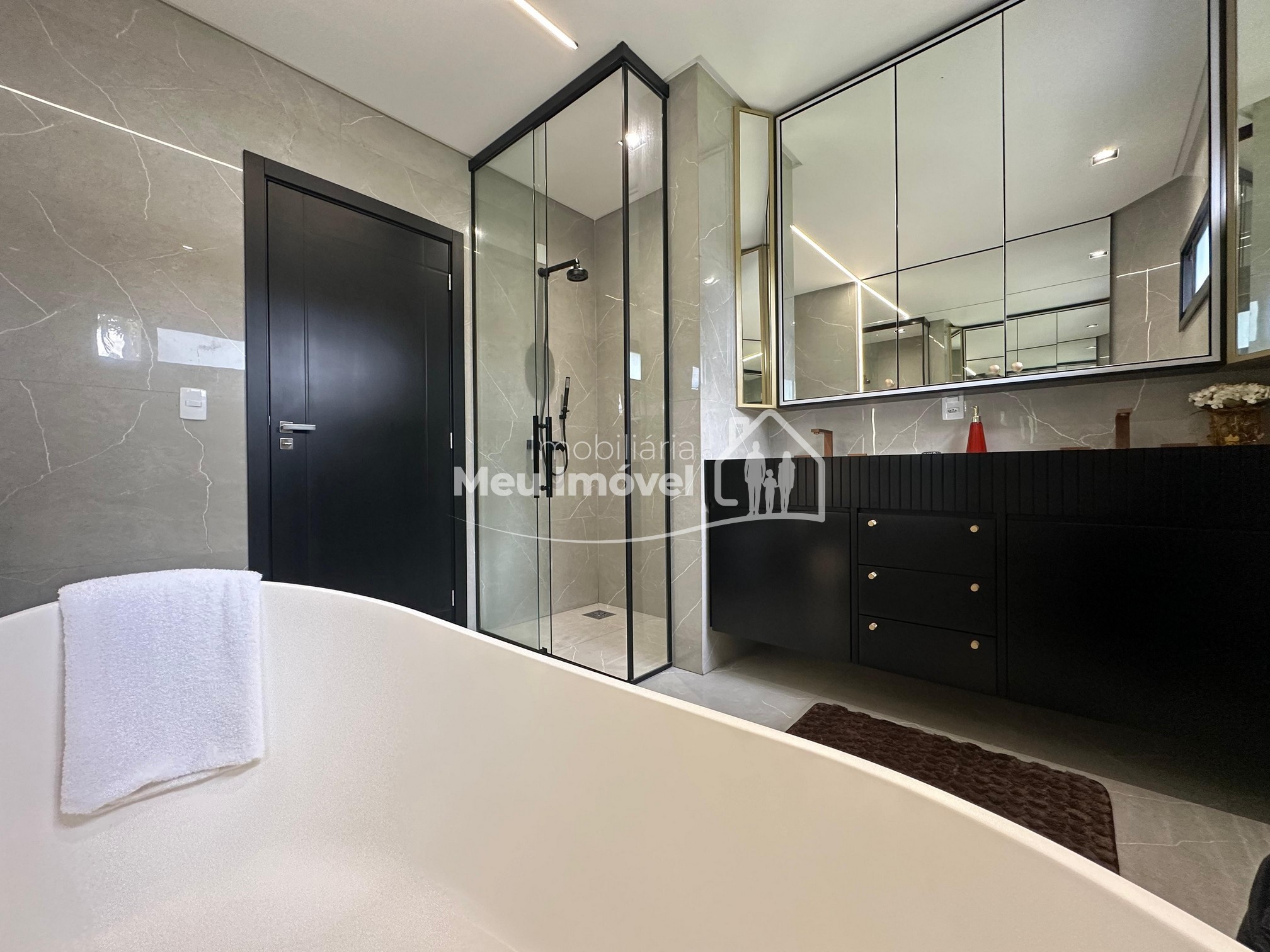 Pavimento térreo: 3 dormitórios (sendo um suíte com banheira de imersão, closet e sacada, 2 demi-suítes com sacada), área de serviço, área social integrada, espaço gourmet com churrasqueira a carvão, lavabo, varanda, garagem para 2 carros.