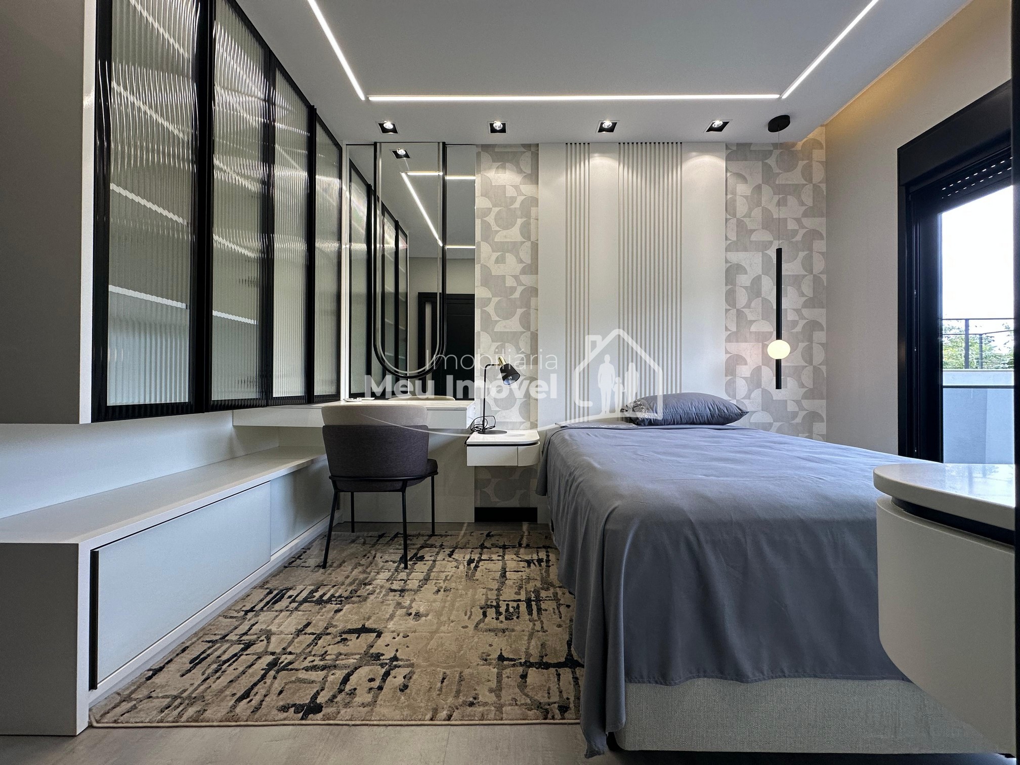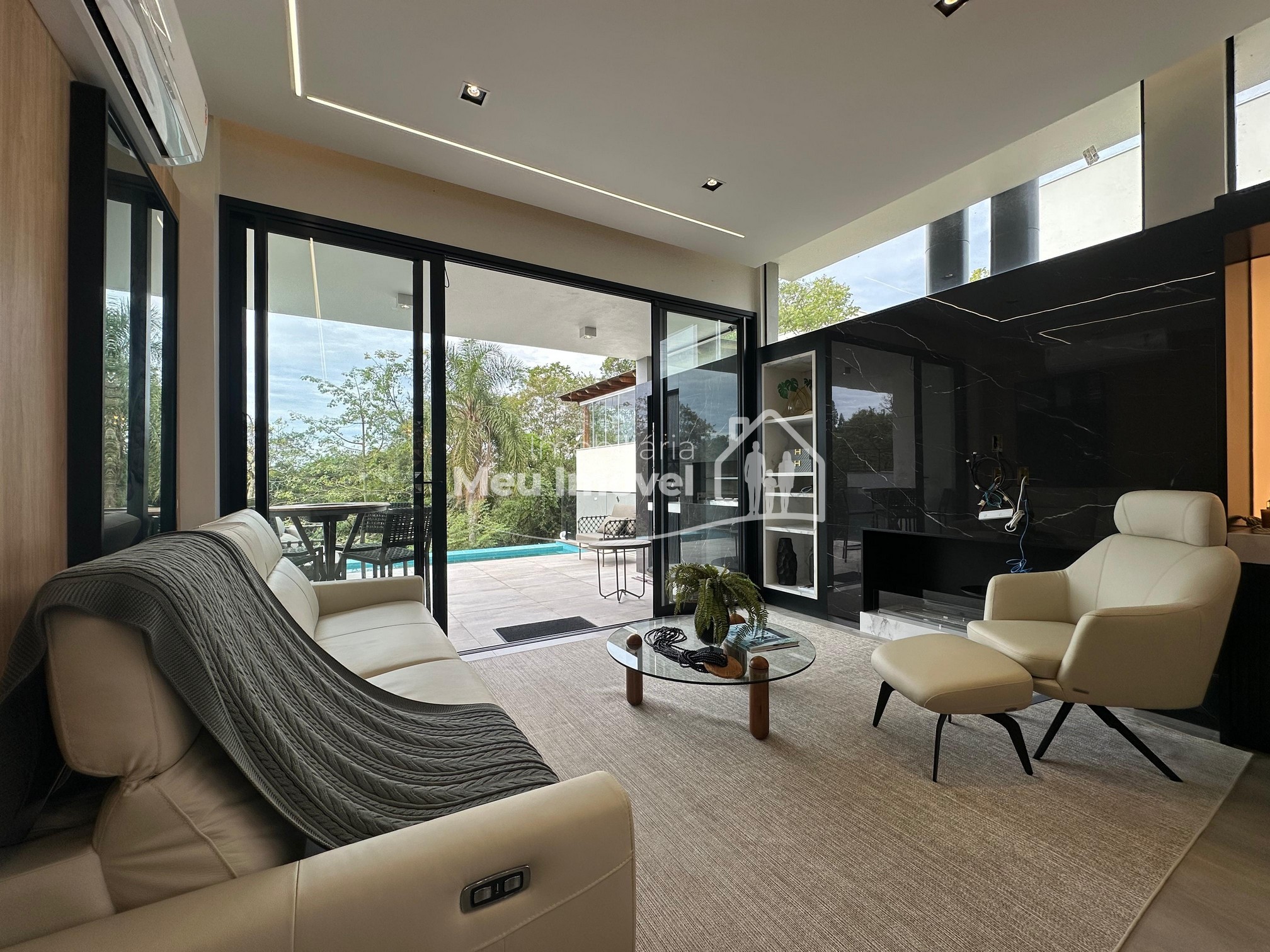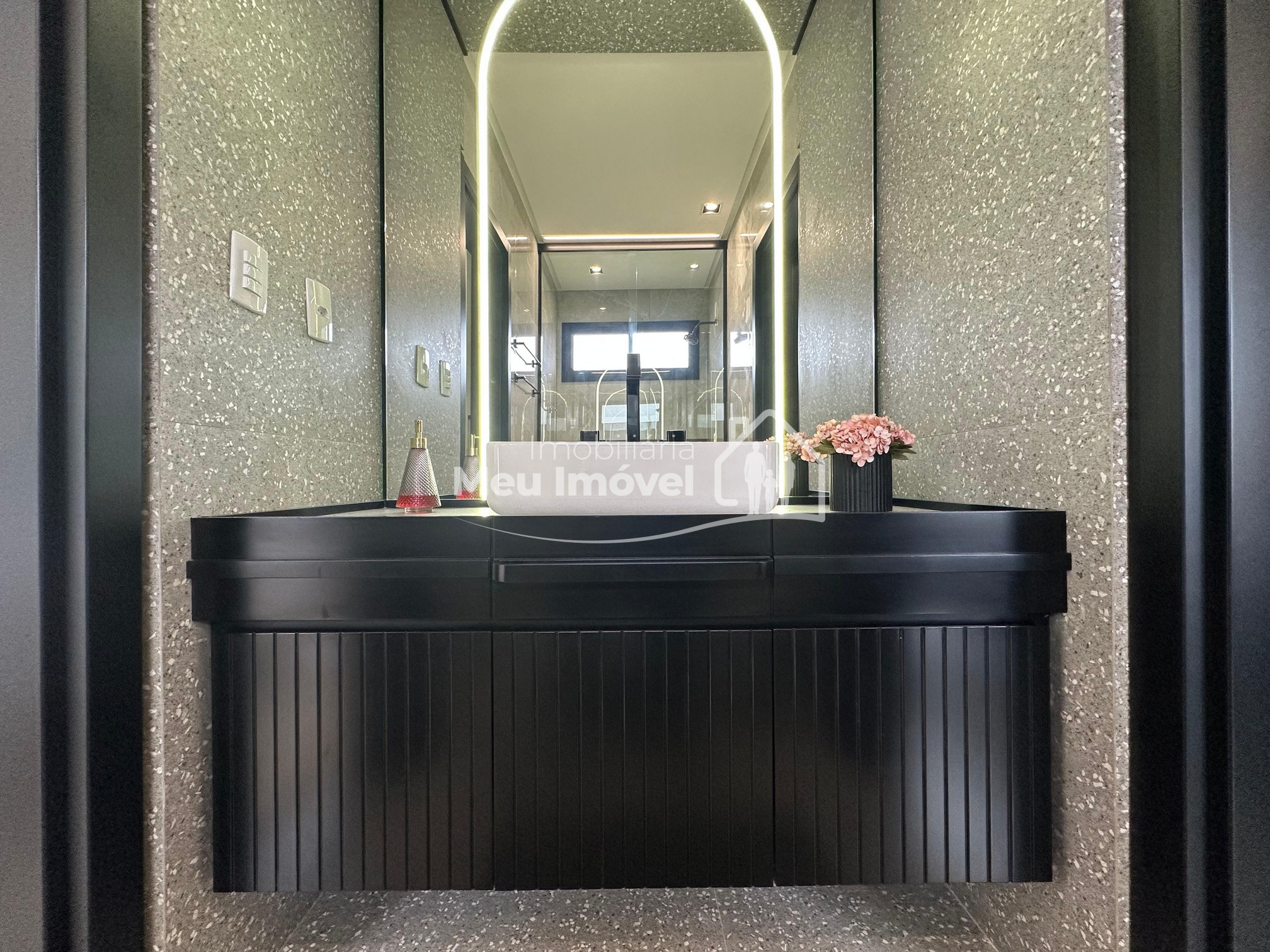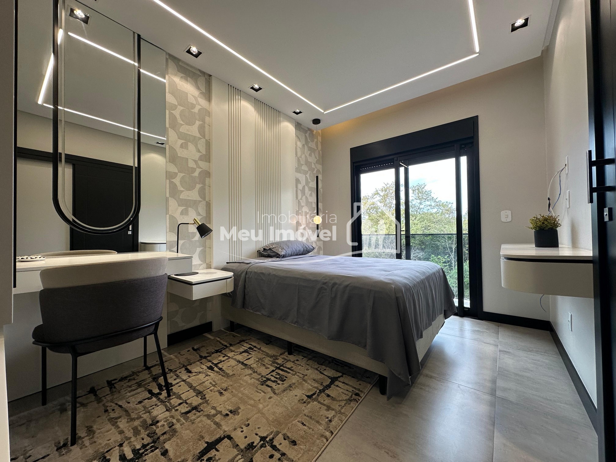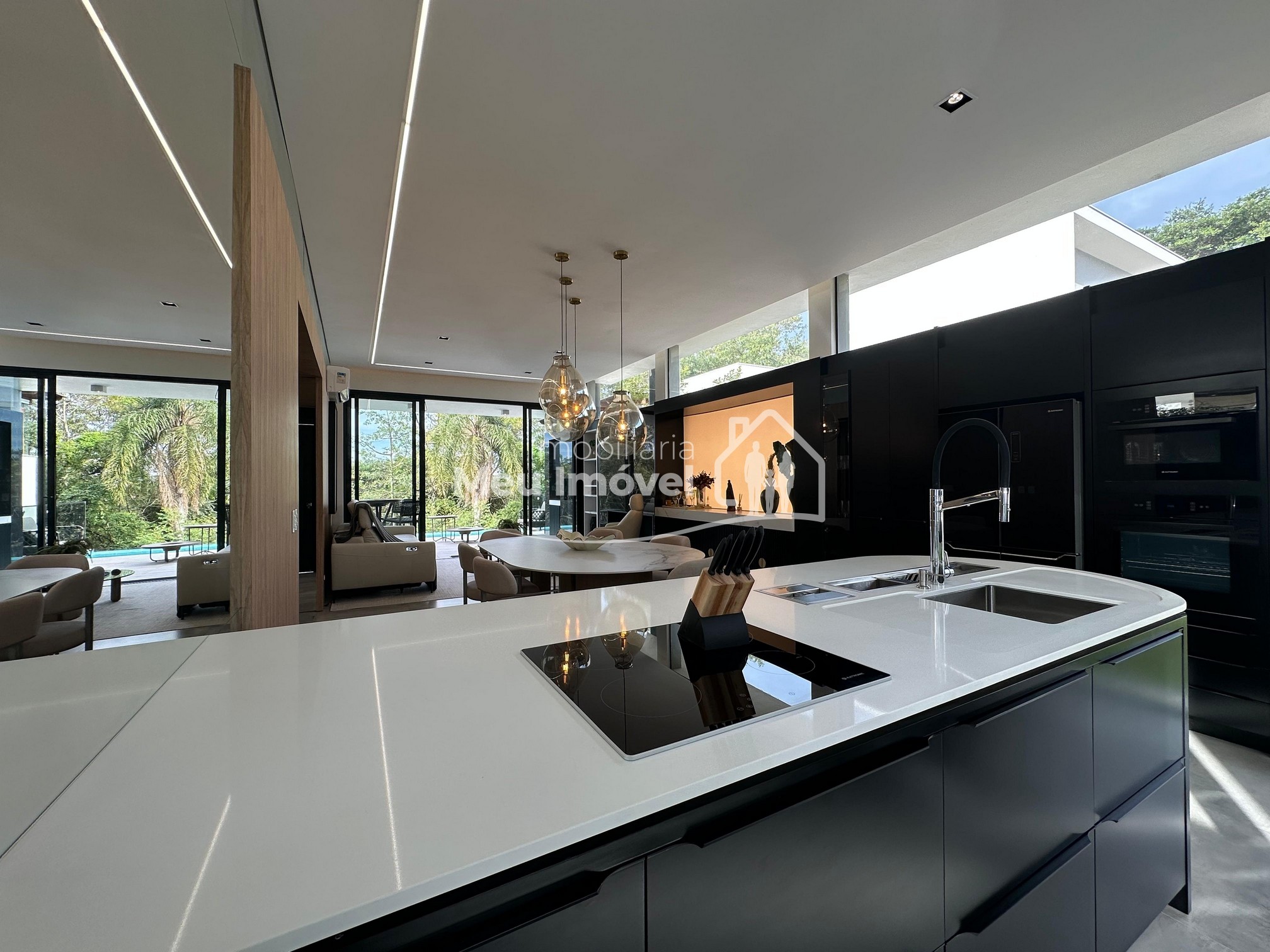 Pavimento térreo: 3 dormitórios (sendo um suíte com banheira de imersão, closet e sacada, 2 demi-suítes com sacada), área de serviço, área social integrada, espaço gourmet com churrasqueira a carvão, lavabo, varanda, garagem para 2 carros.