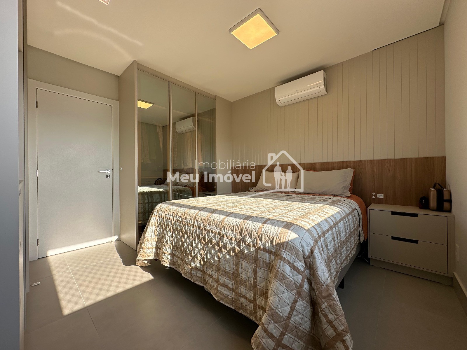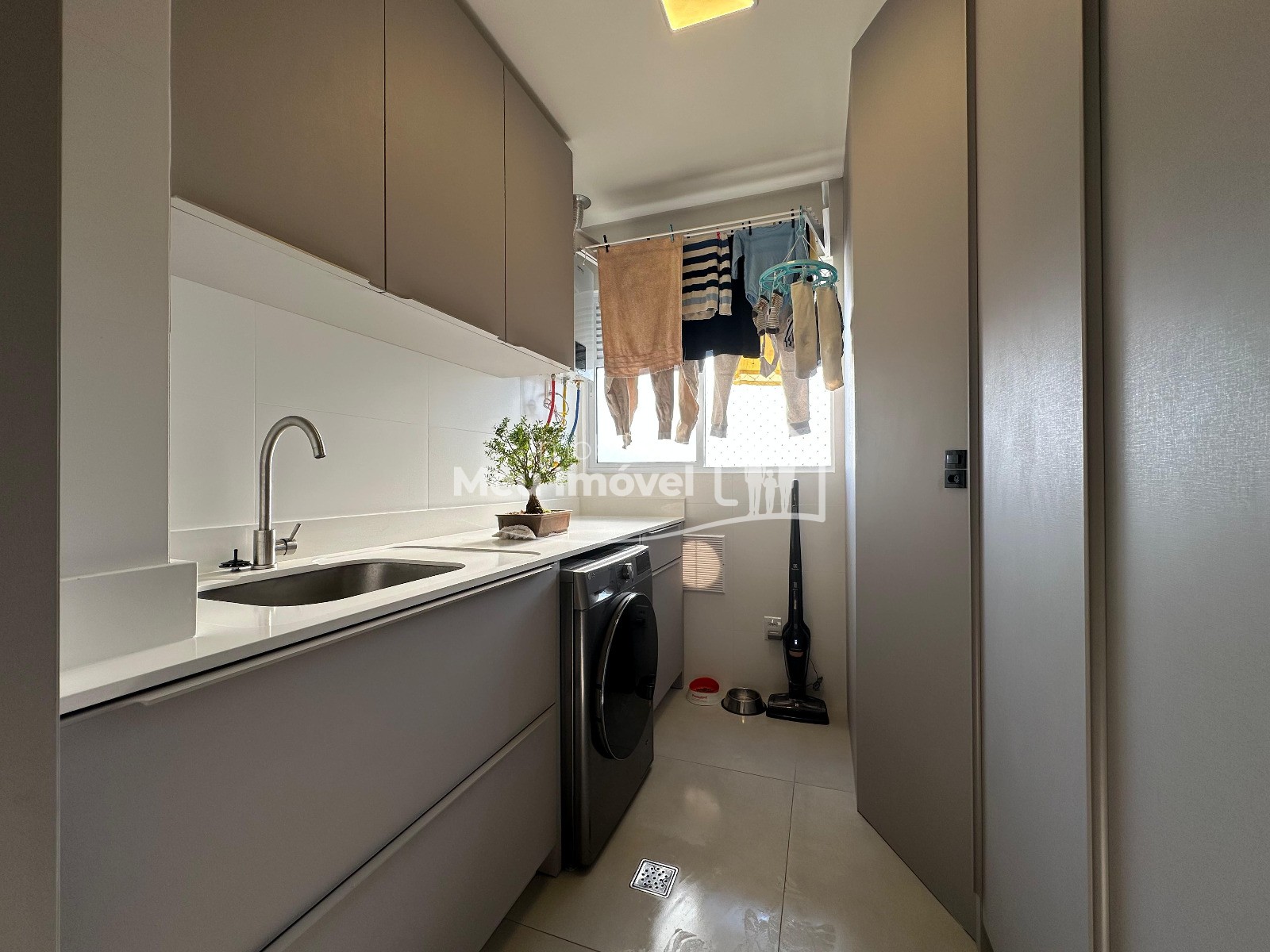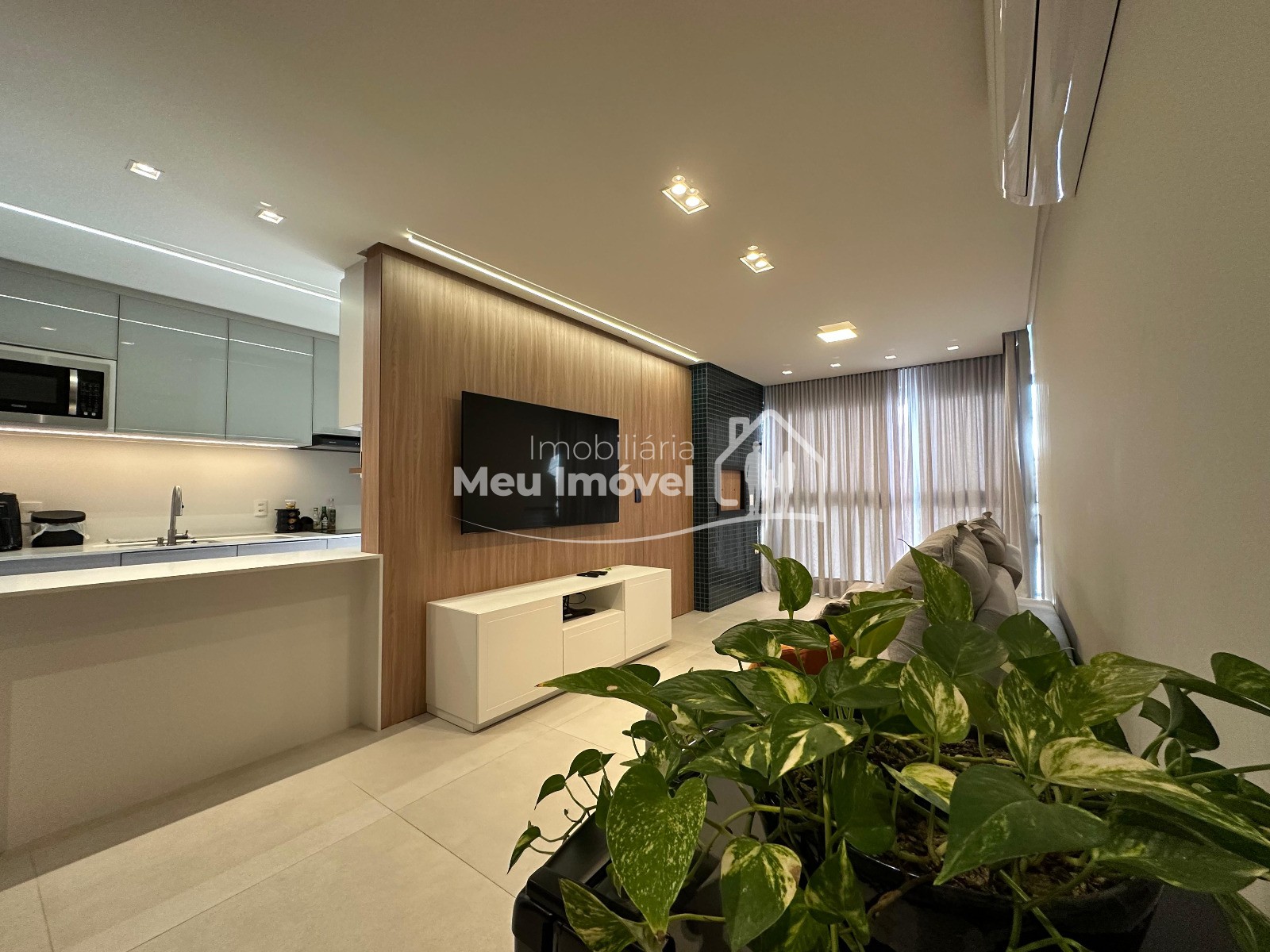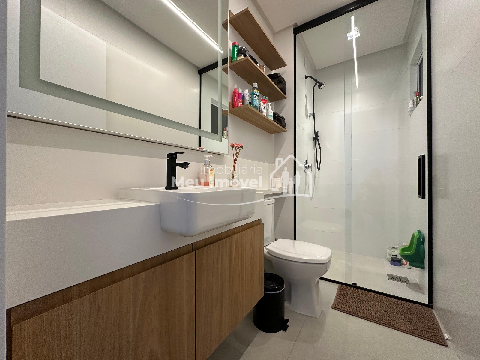 3 dormitórios sendo 1 suíte; banheiro social; cozinha; lavanderia; sala de estar e jantar; lavabo; sacada com churrasqueira à carvão integrada; duas vagas de garagem e depósito