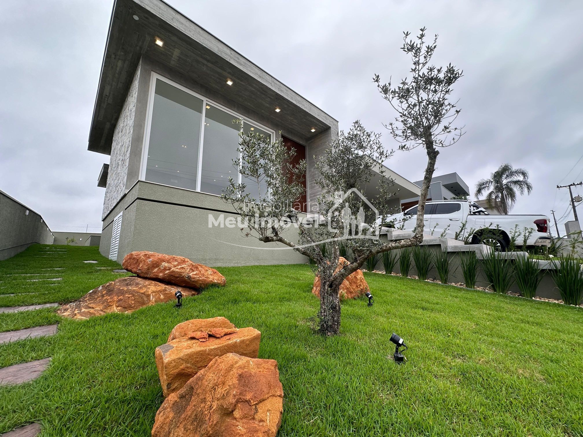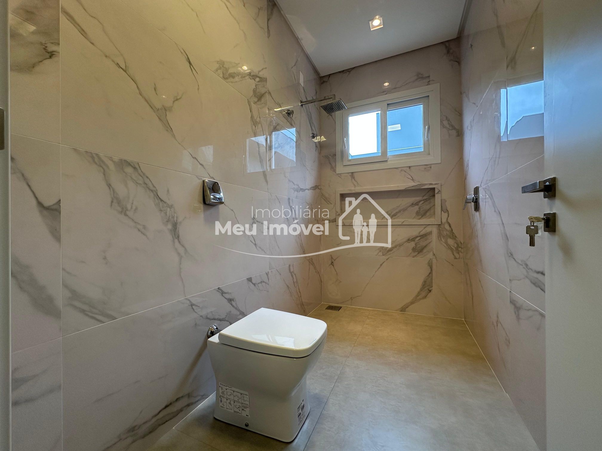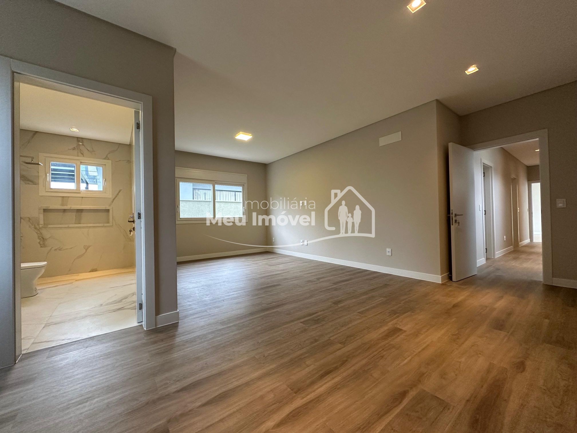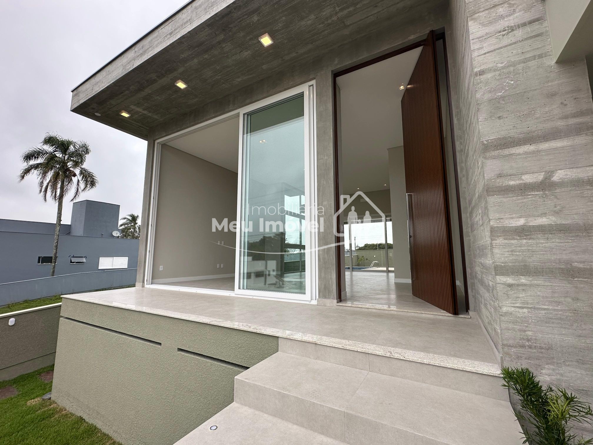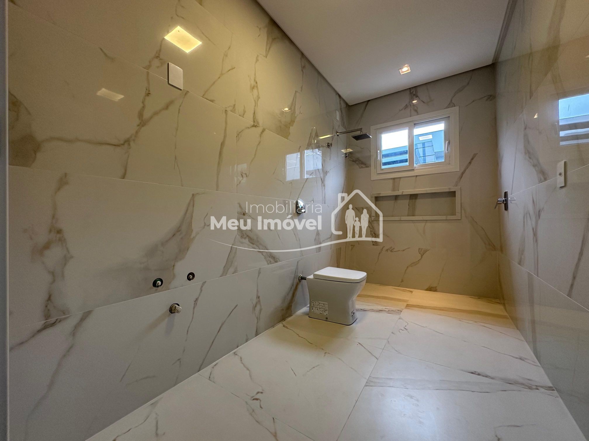 O alto padrão de acabamento esta presente em todos os lugares. Na área externa temos a cobertura em platibanda, concreto aparente e pedras. Já na entrada, uma porta pivotante muito convidativa dando acesso a área social, que por sua vez conta com pé direito alto, amplas aberturas em PVC que geram muita claridade ao ambiente e piso porcelanato; pontos de água, esgoto e gás na cozinha, prontos para o sistema de ilha; todos os banheiros com chuveiros, nicho, revestimento em porcelanato e vasos sanitários instalados; na área íntima, aberturas externas em PVC, com tela e persianas automatizadas e revestimento em vinílico. Além disso, todas as aberturas internas e rodapés em madeira laka, aquecimento a gás, espera para ar condicionado split na área social e dormitórios, iluminação em led, gesso em todos os ambientes.