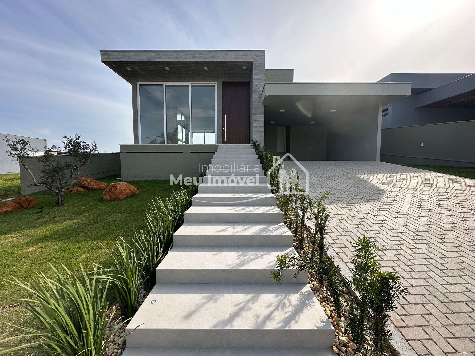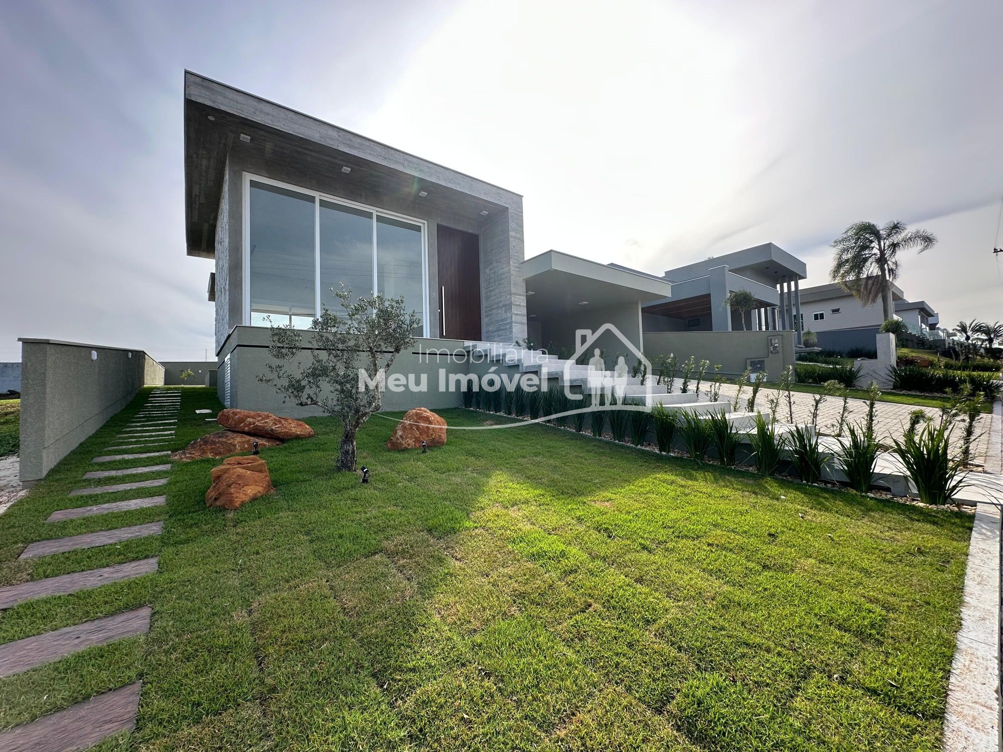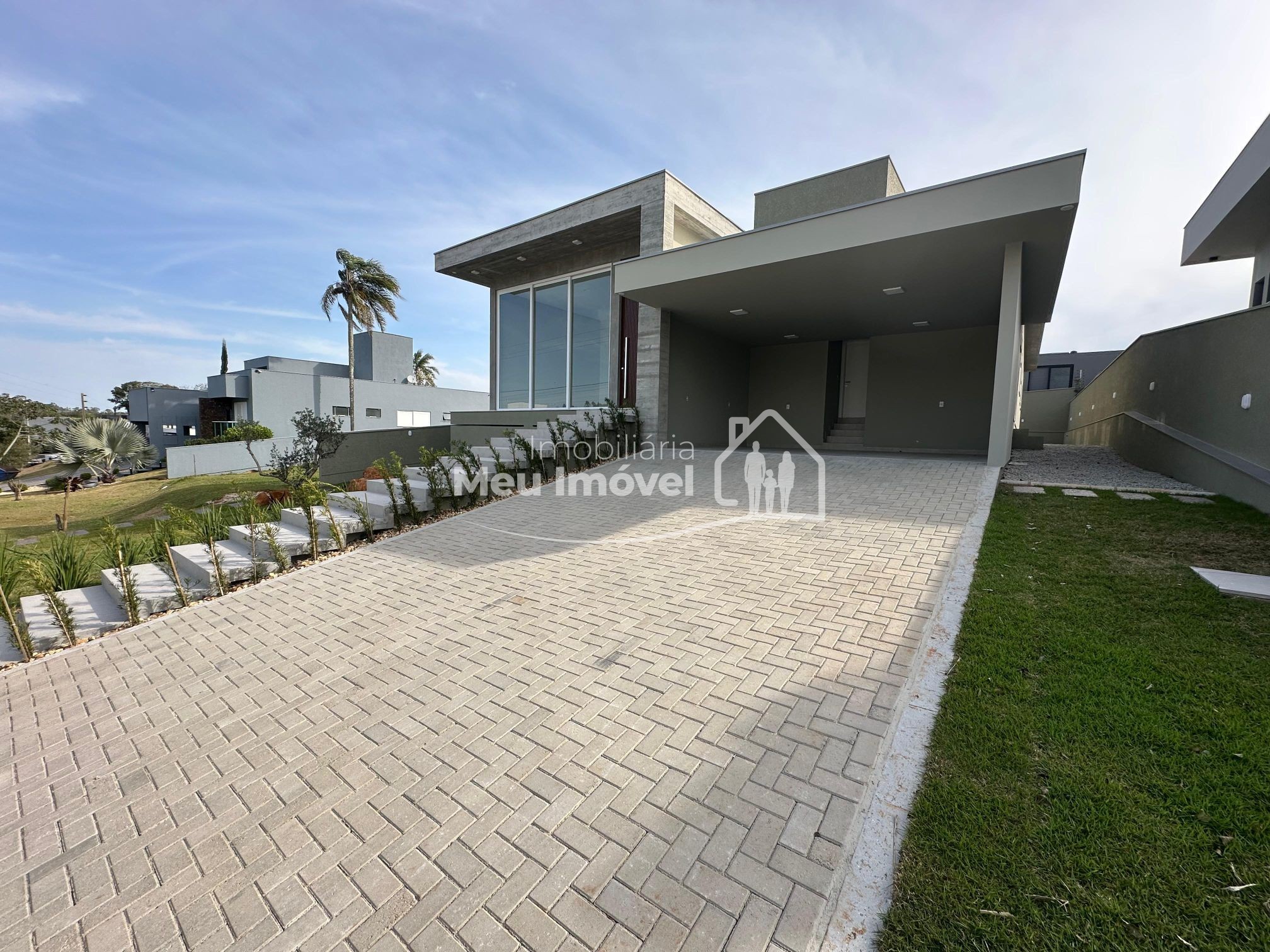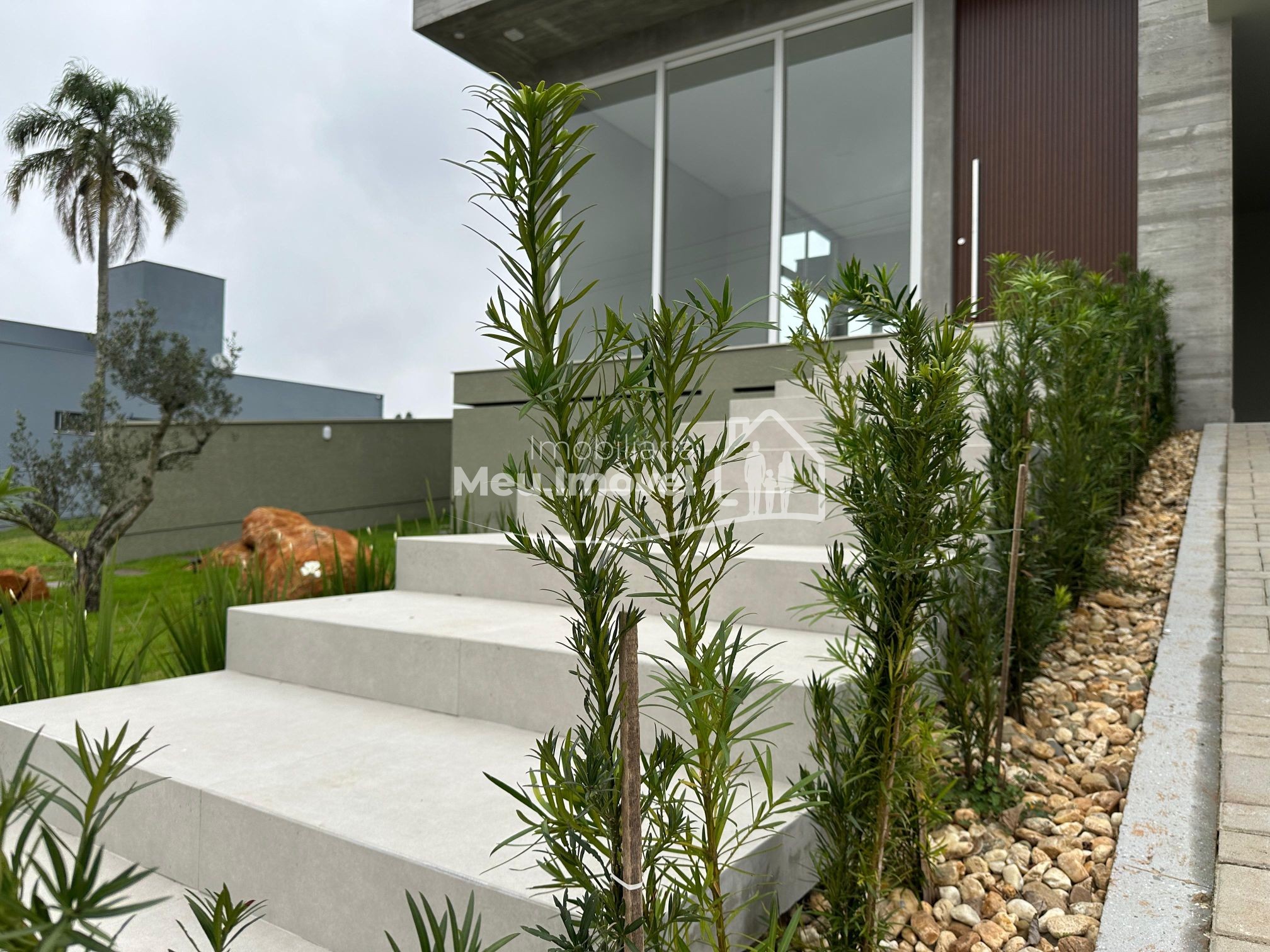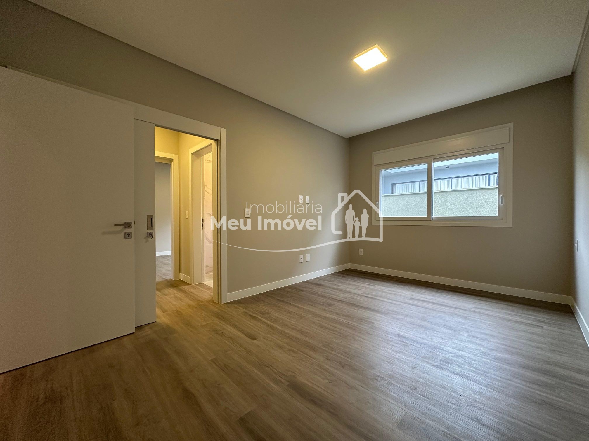 O alto padrão de acabamento esta presente em todos os lugares. Na área externa temos a cobertura em platibanda, concreto aparente e pedras. Já na entrada, uma porta pivotante muito convidativa dando acesso a área social, que por sua vez conta com pé direito alto, amplas aberturas em PVC que geram muita claridade ao ambiente e piso porcelanato; pontos de água, esgoto e gás na cozinha, prontos para o sistema de ilha; todos os banheiros com chuveiros, nicho, revestimento em porcelanato e vasos sanitários instalados; na área íntima, aberturas externas em PVC, com tela e persianas automatizadas e revestimento em vinílico. Além disso, todas as aberturas internas e rodapés em madeira laka, aquecimento a gás, espera para ar condicionado split na área social e dormitórios, iluminação em led, gesso em todos os ambientes.