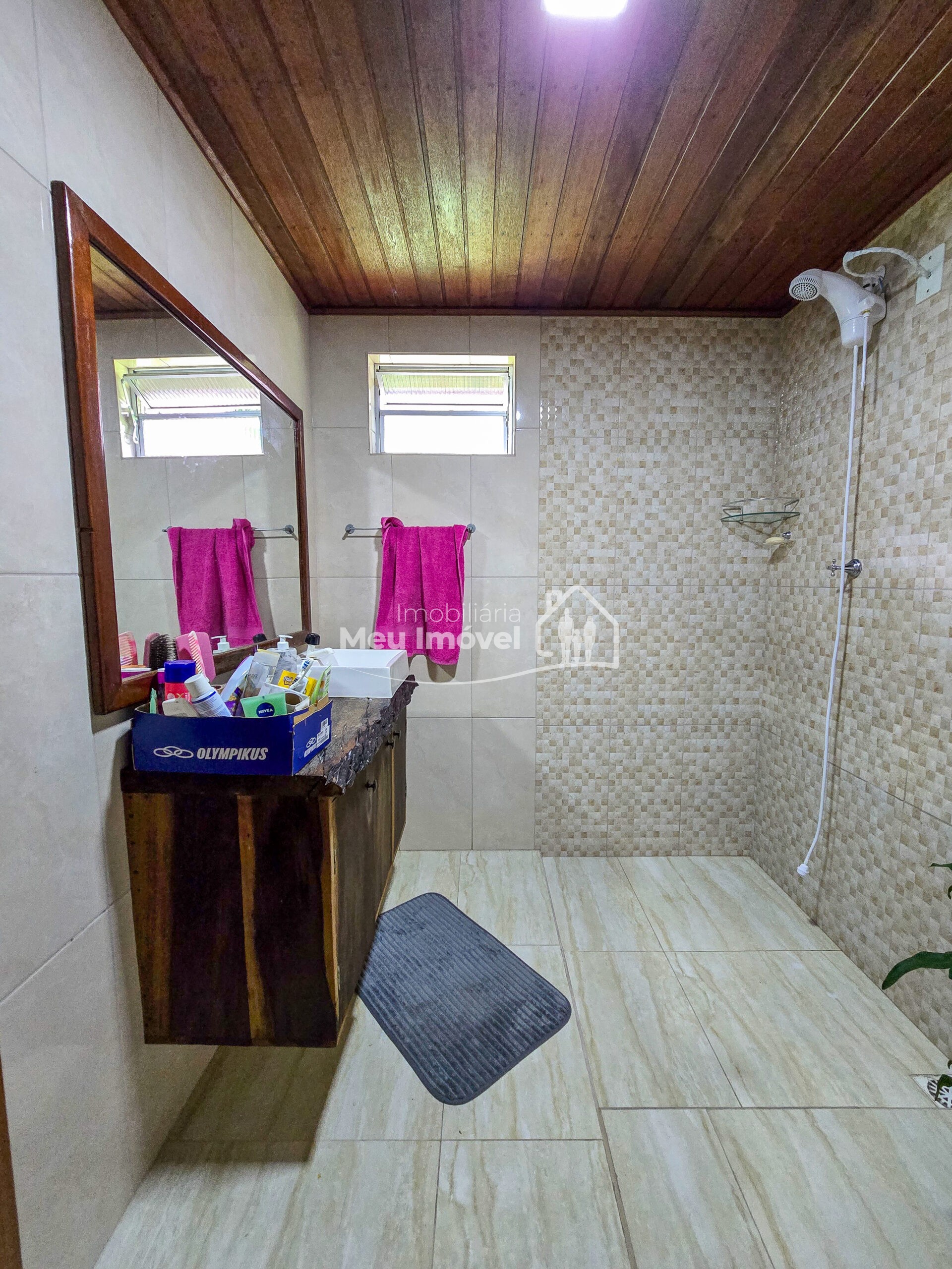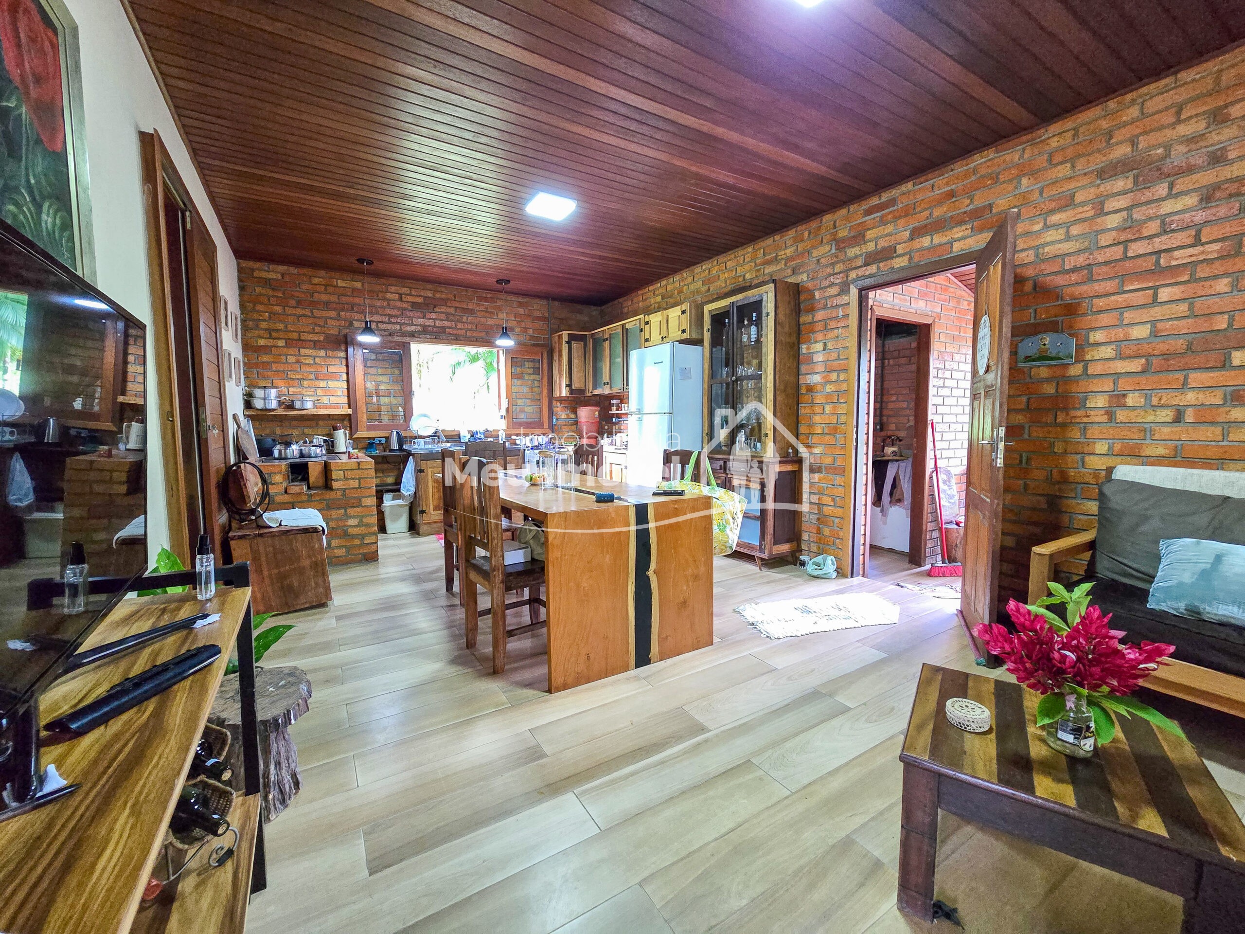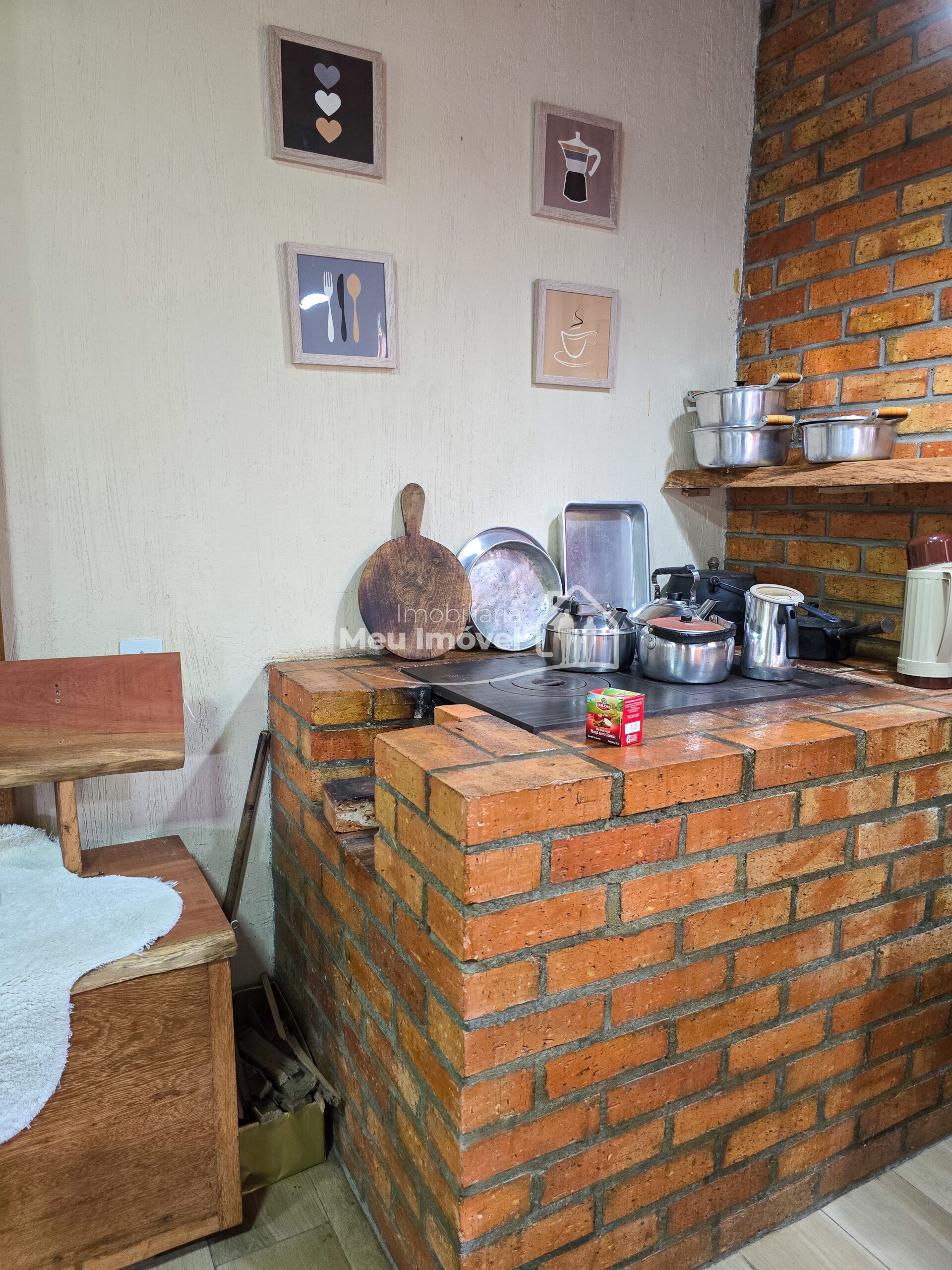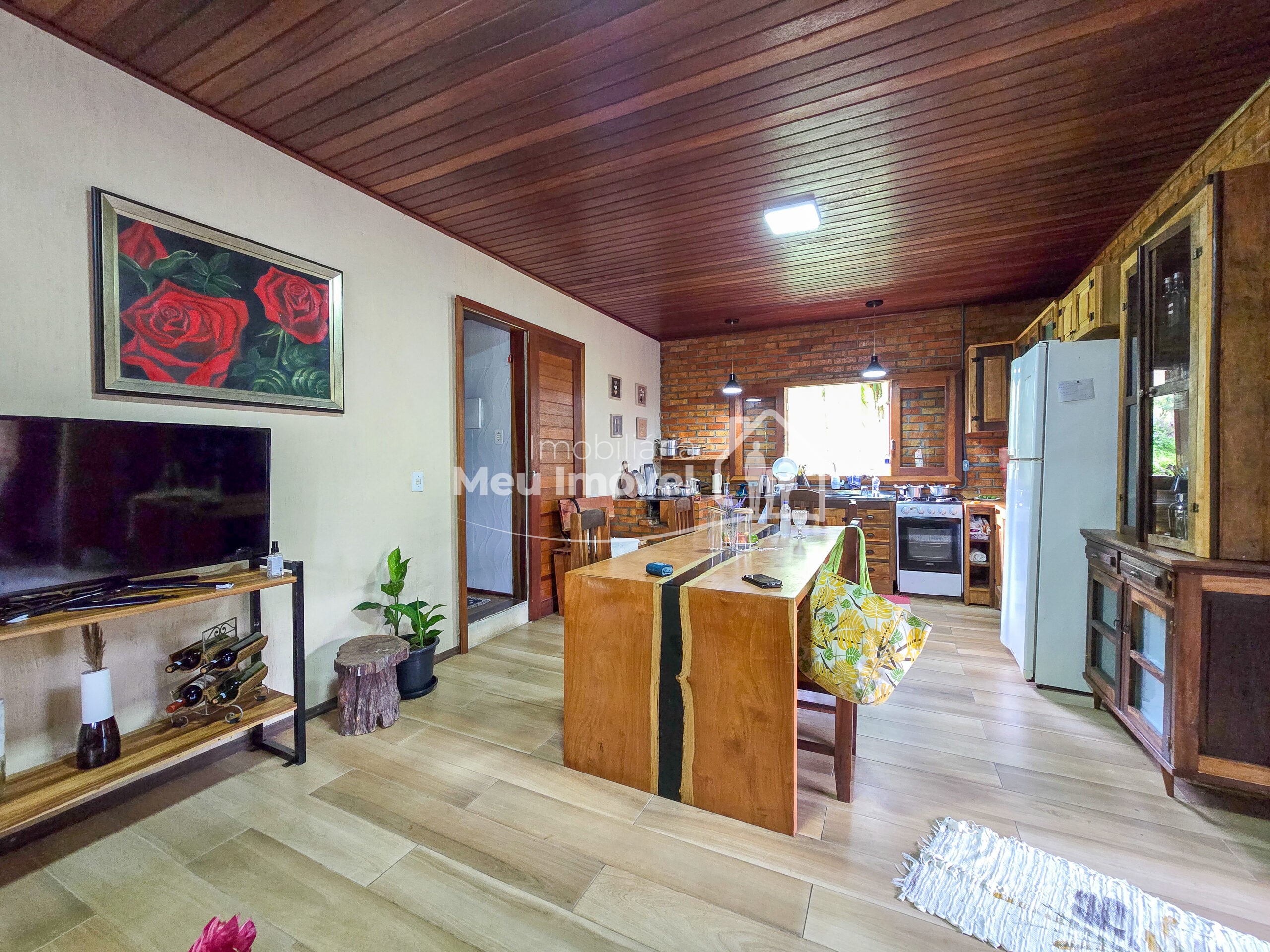 Casa Mista de aproximadamente 100m², com 3 dormitórios, banheiro social, sala de estar e jantar, cozinha com fogão a lenha, varanda.