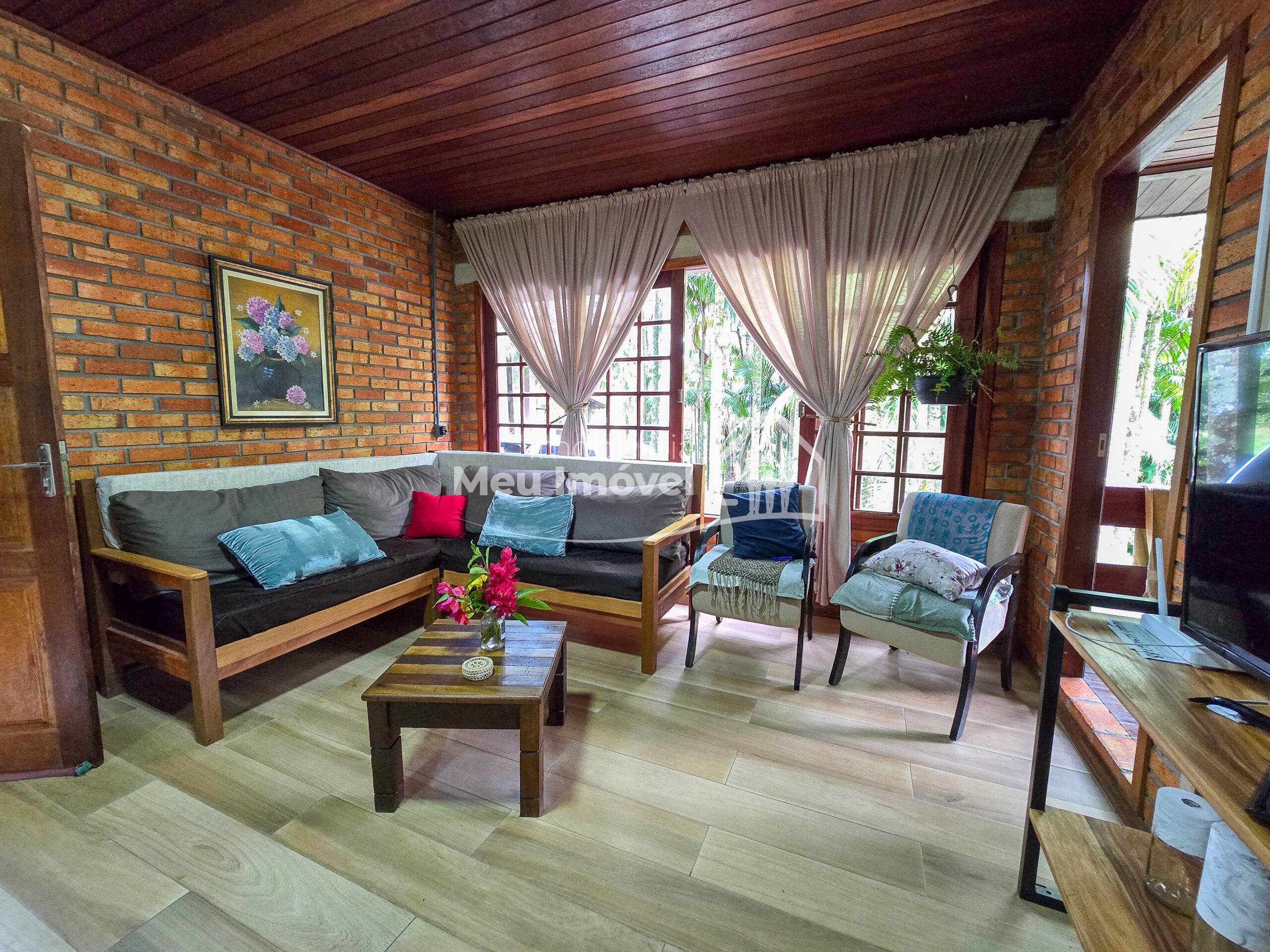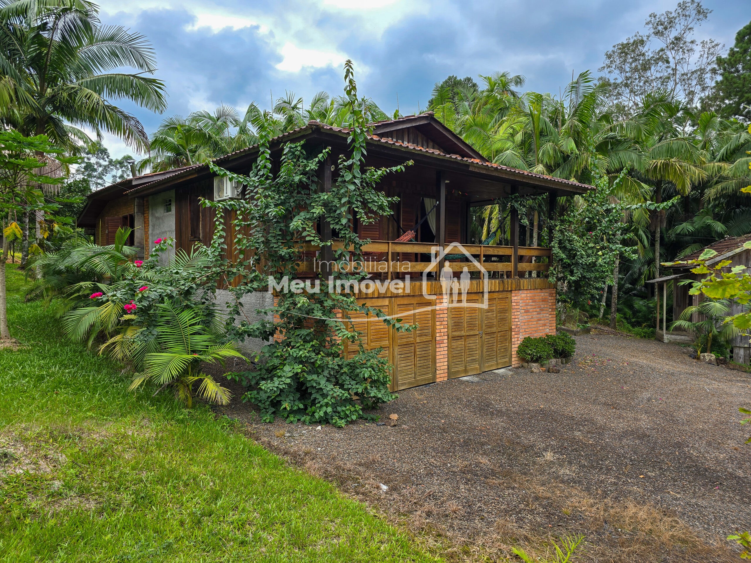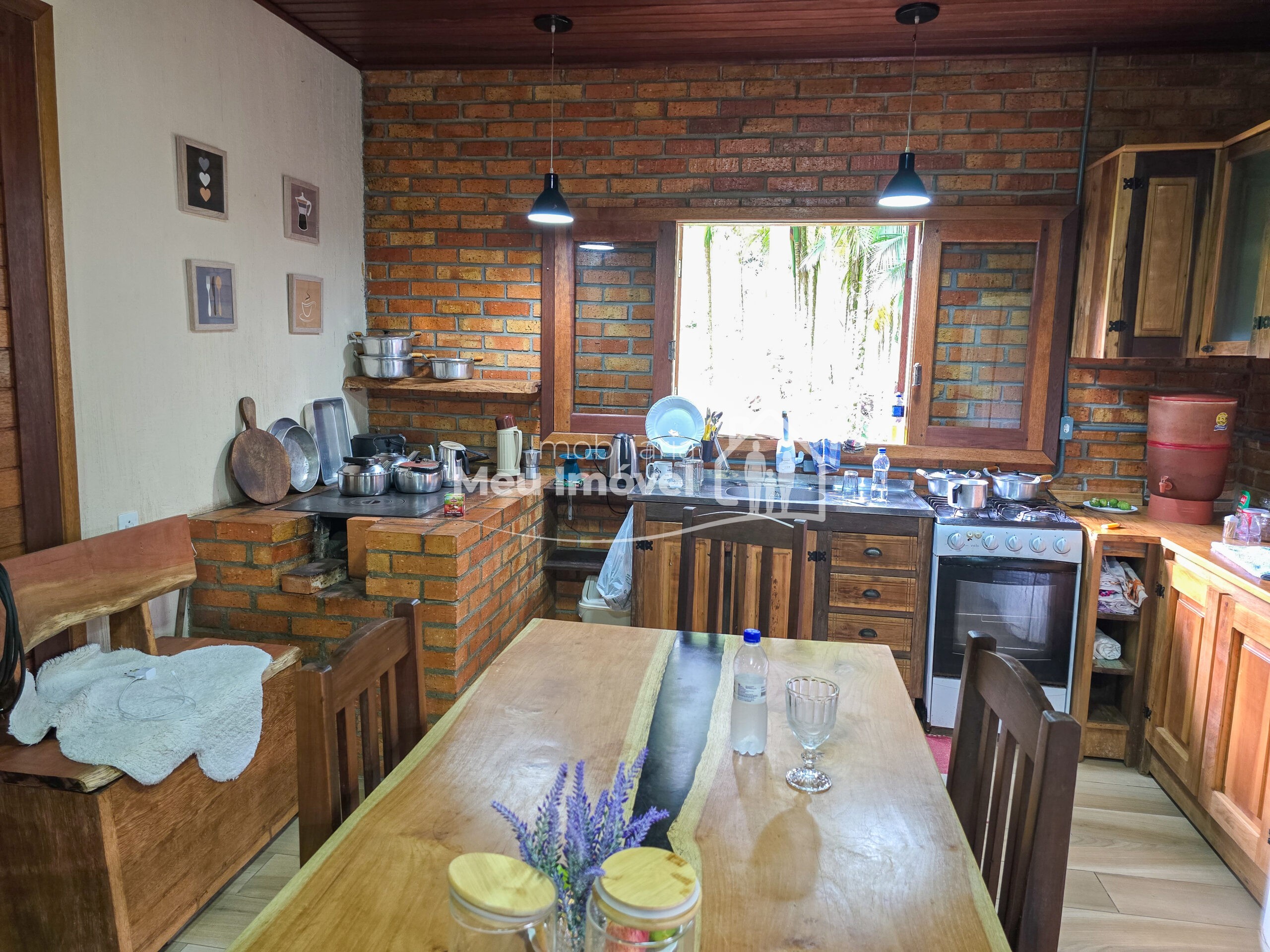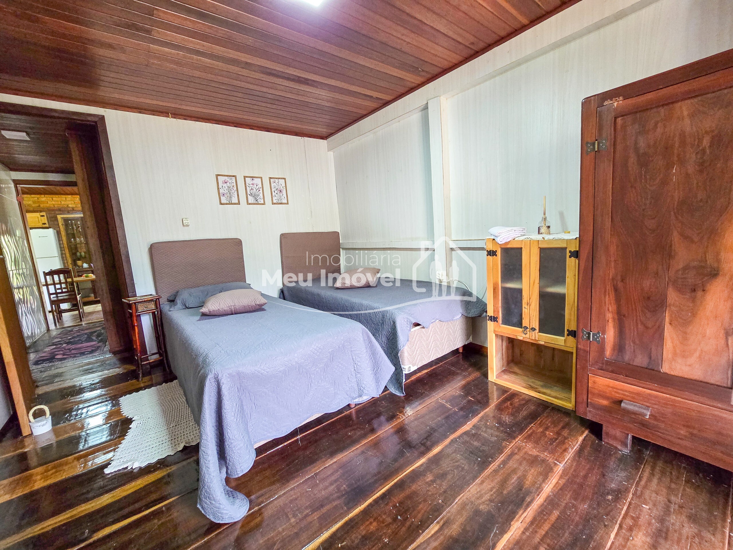 Casa Mista de aproximadamente 100m², com 3 dormitórios, banheiro social, sala de estar e jantar, cozinha com fogão a lenha, varanda.
