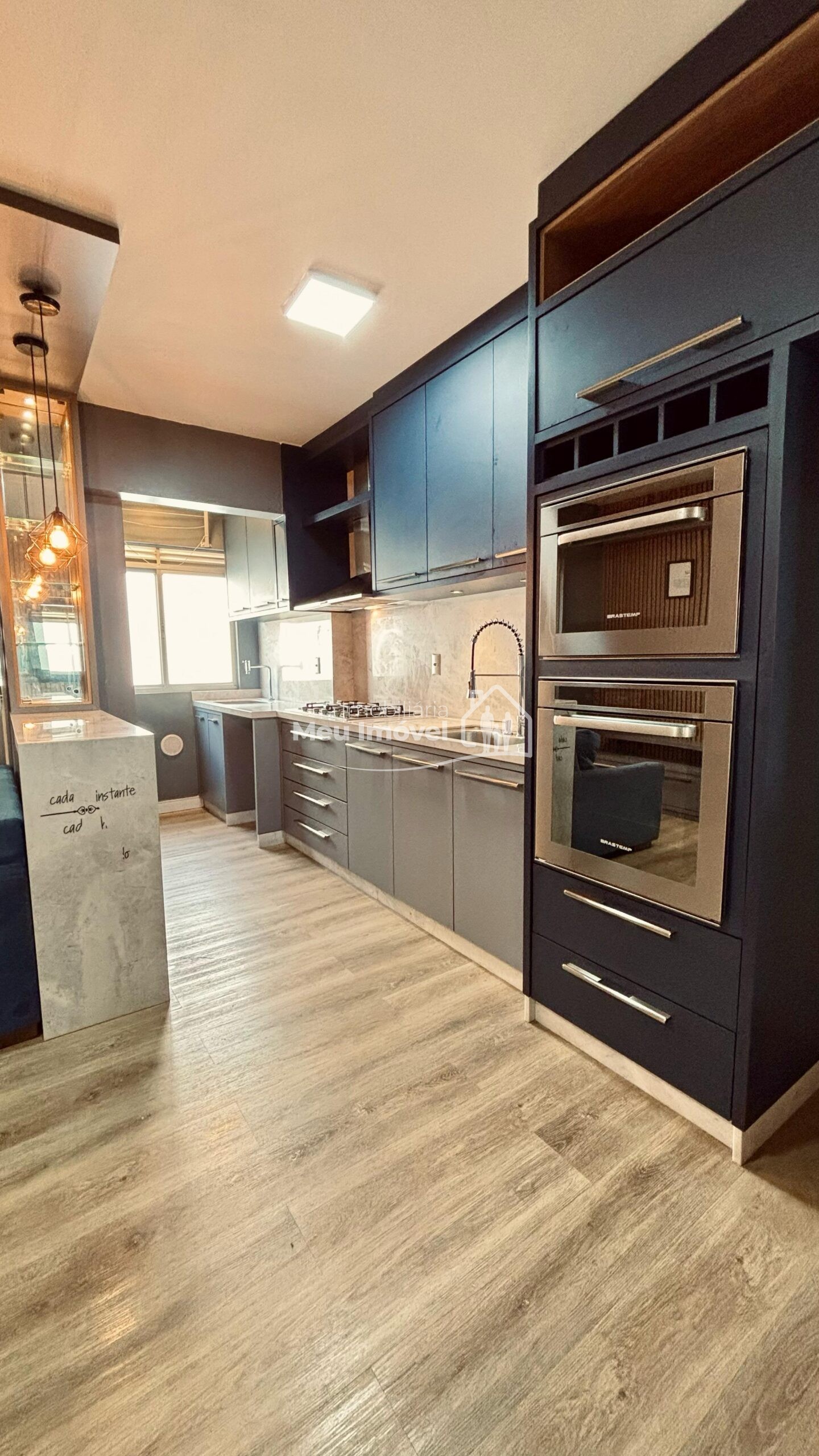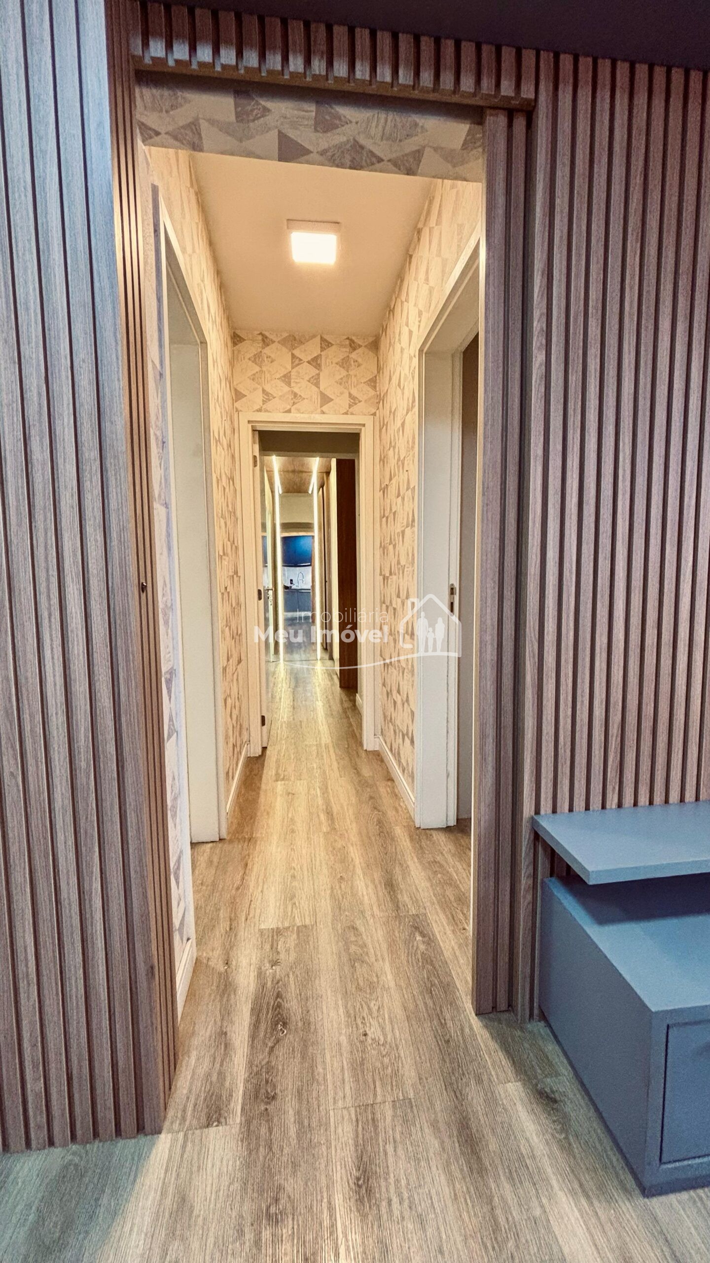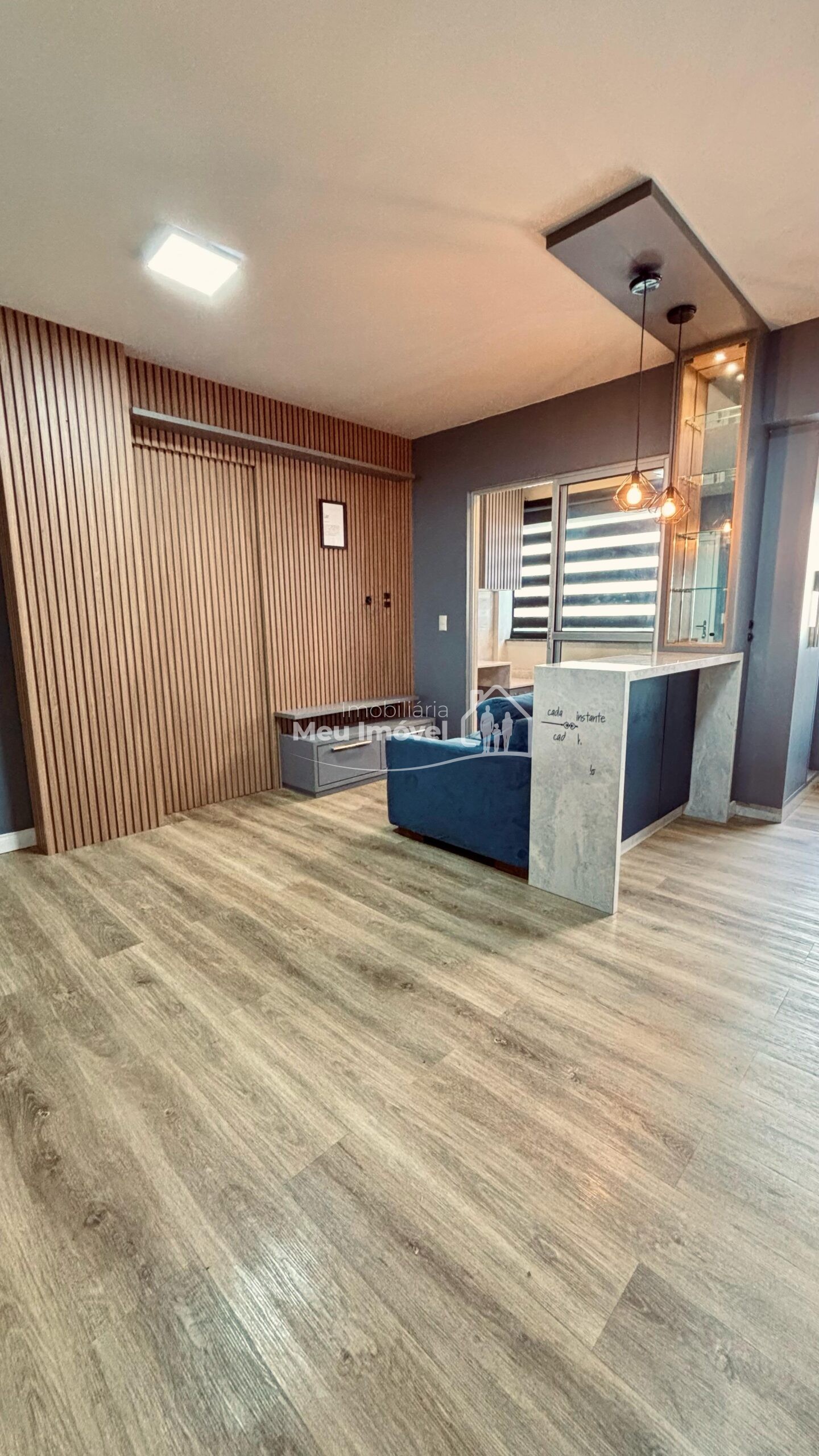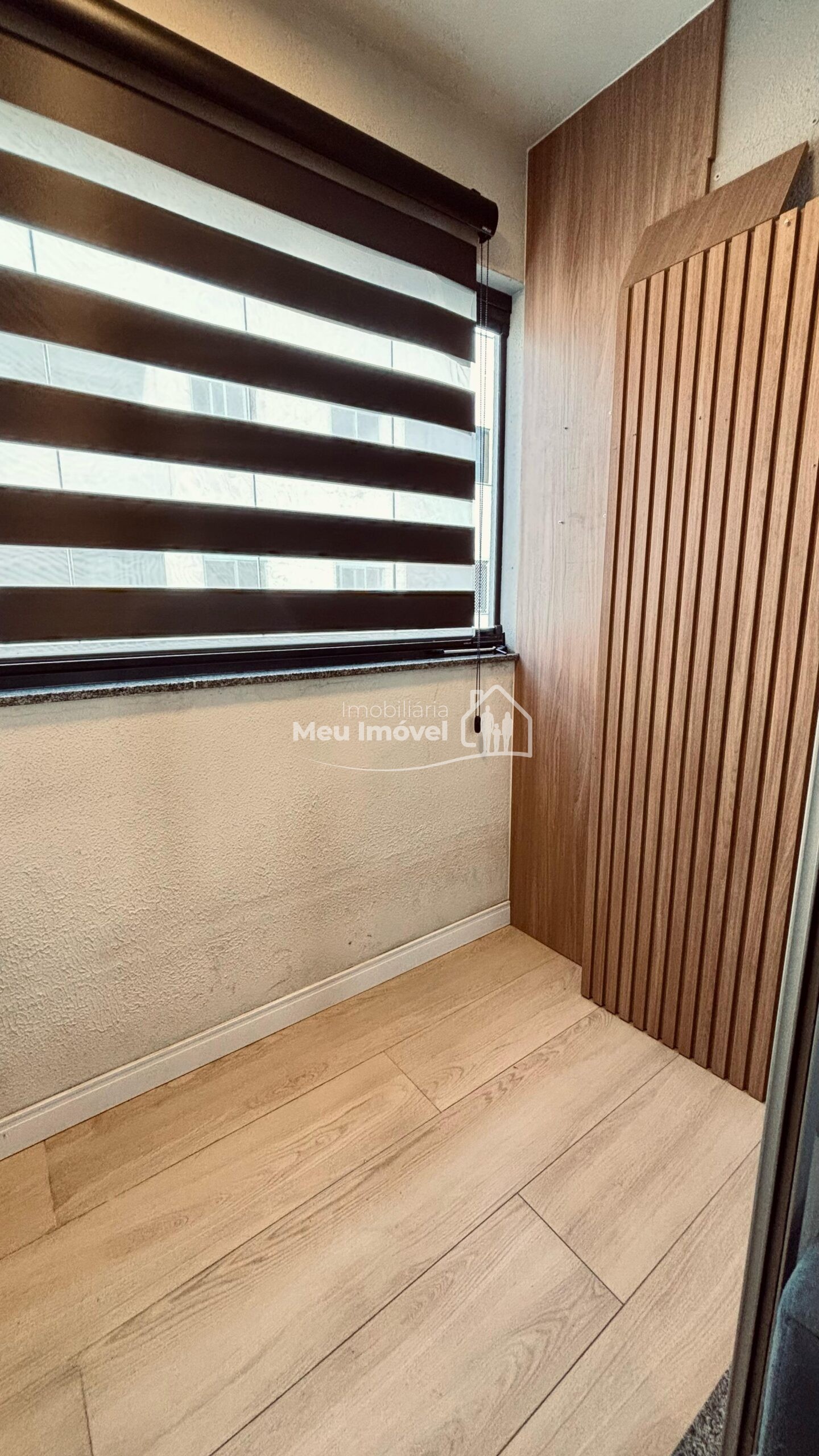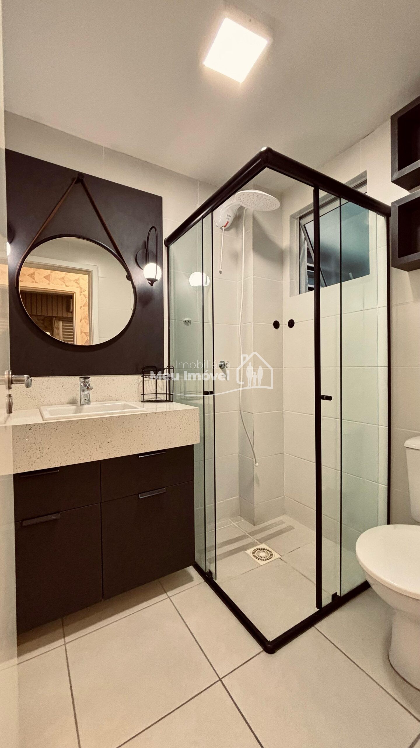 Dois dormitorios com suite, banheiro social, sala de estar/jantar, sacada e uma vaga de garagem.