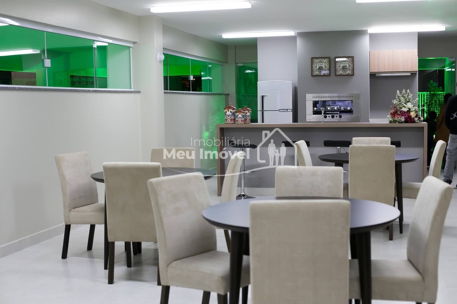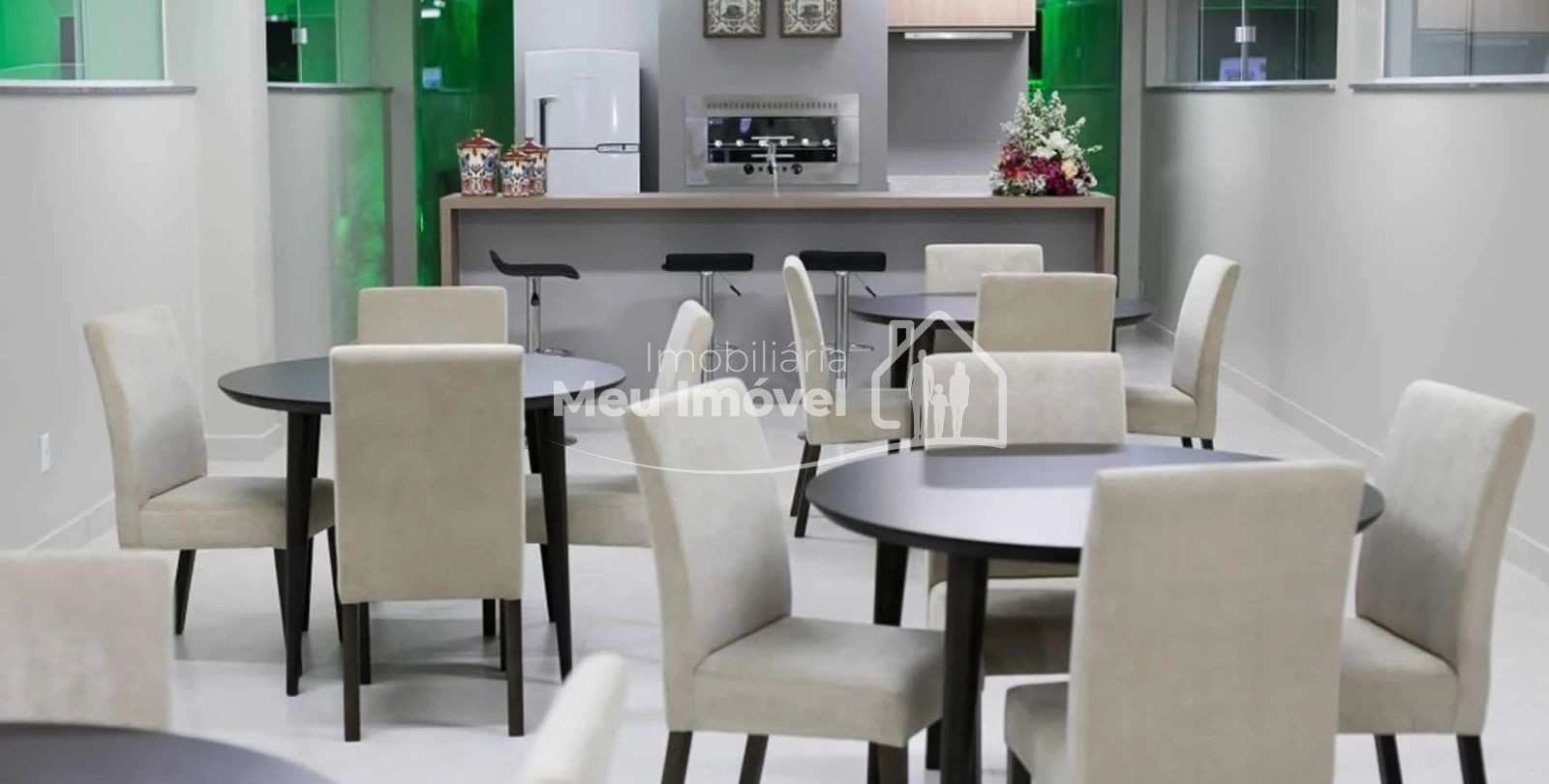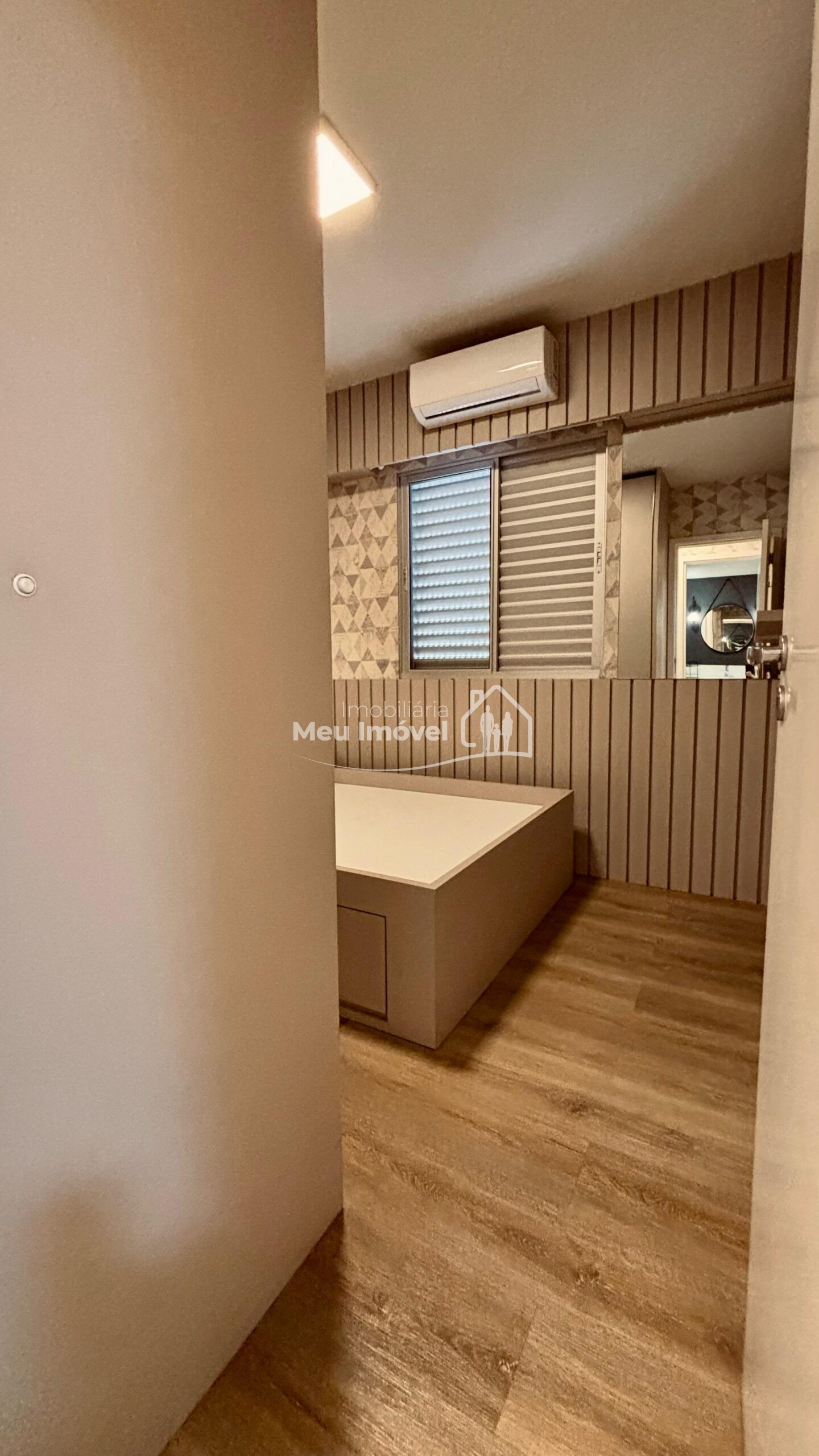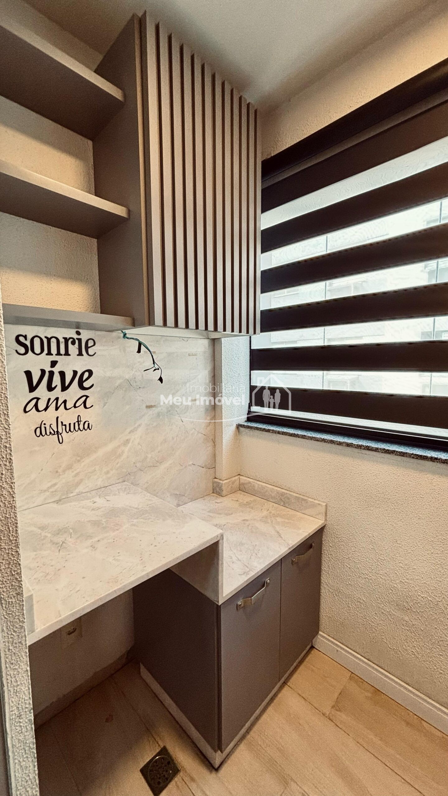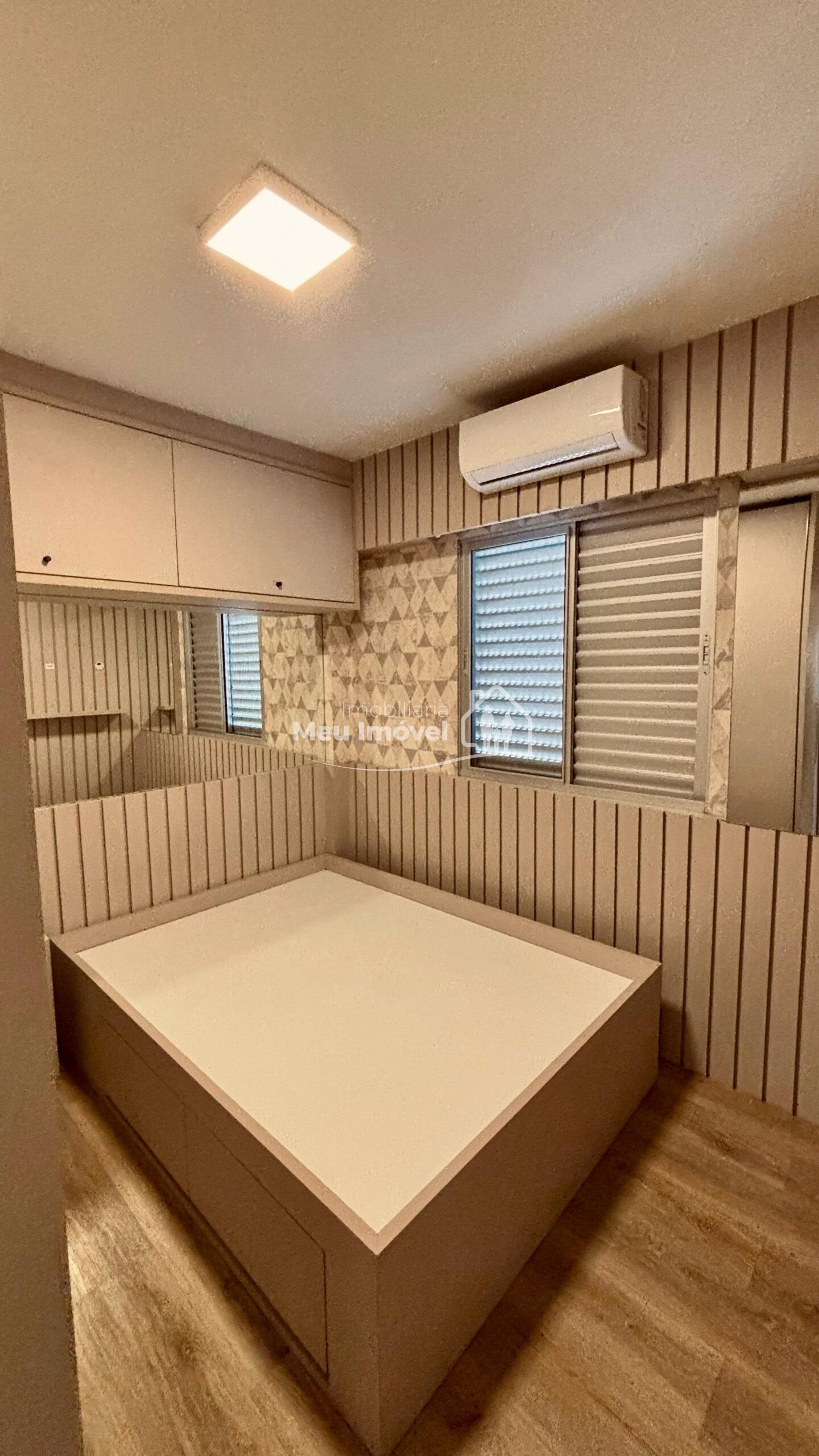 Dois dormitorios com suite, banheiro social, sala de estar/jantar, sacada e uma vaga de garagem.