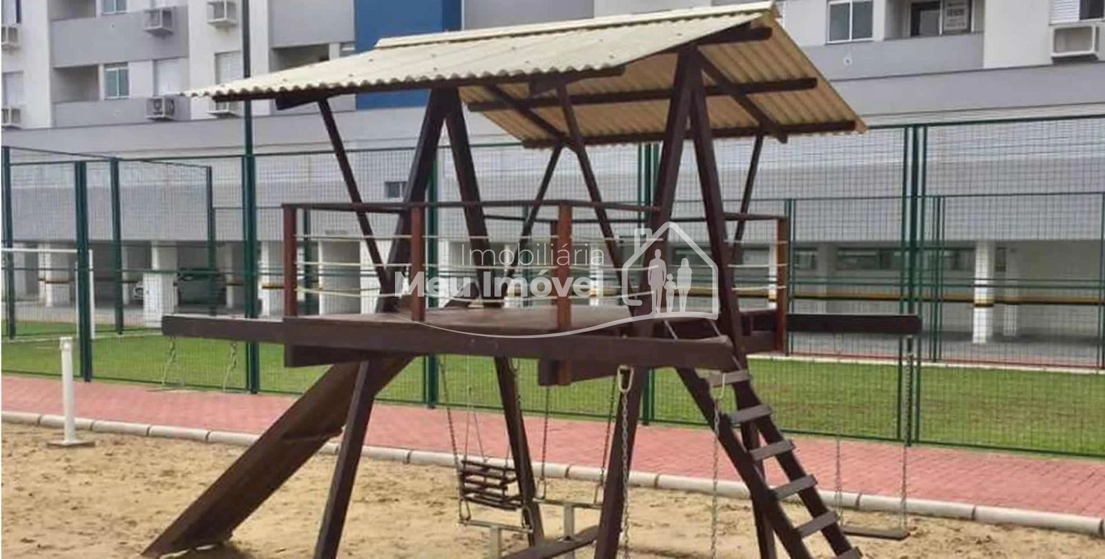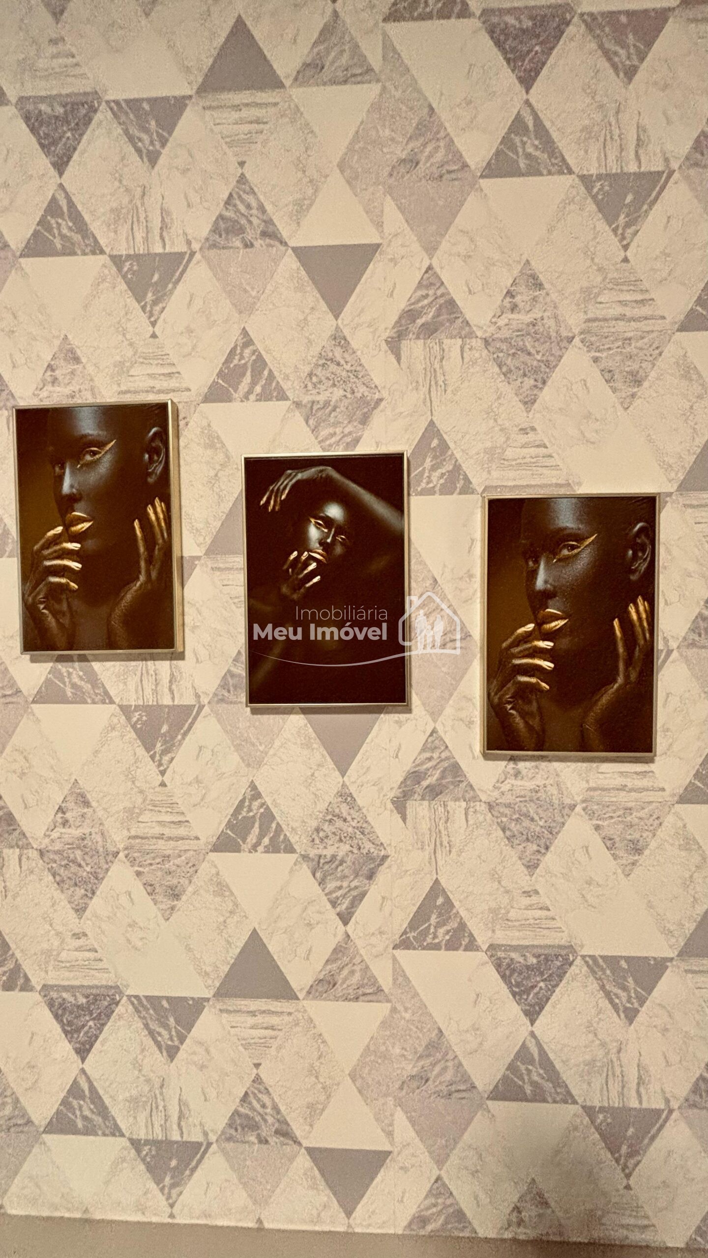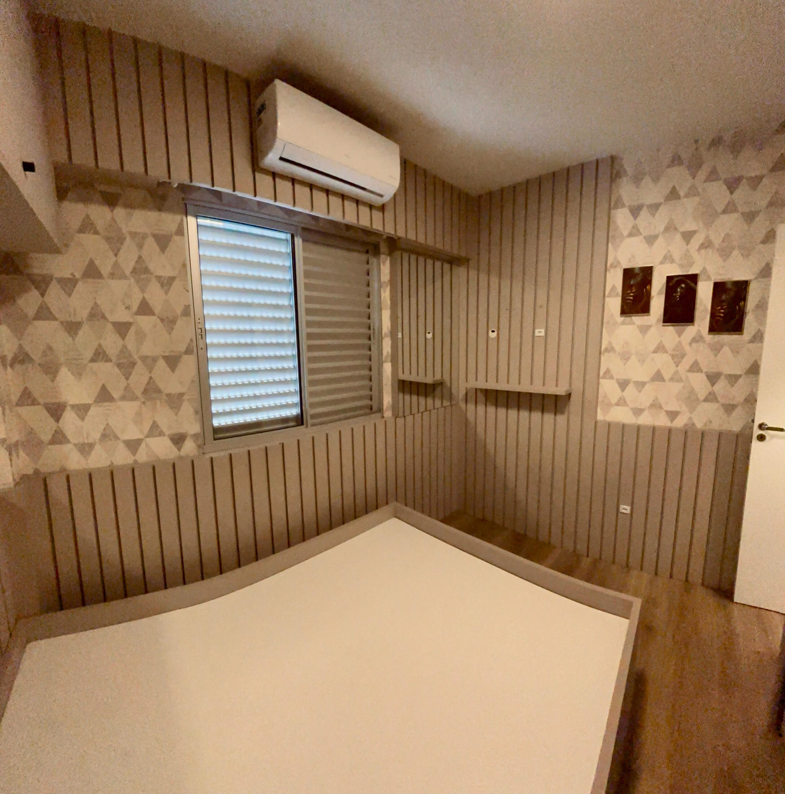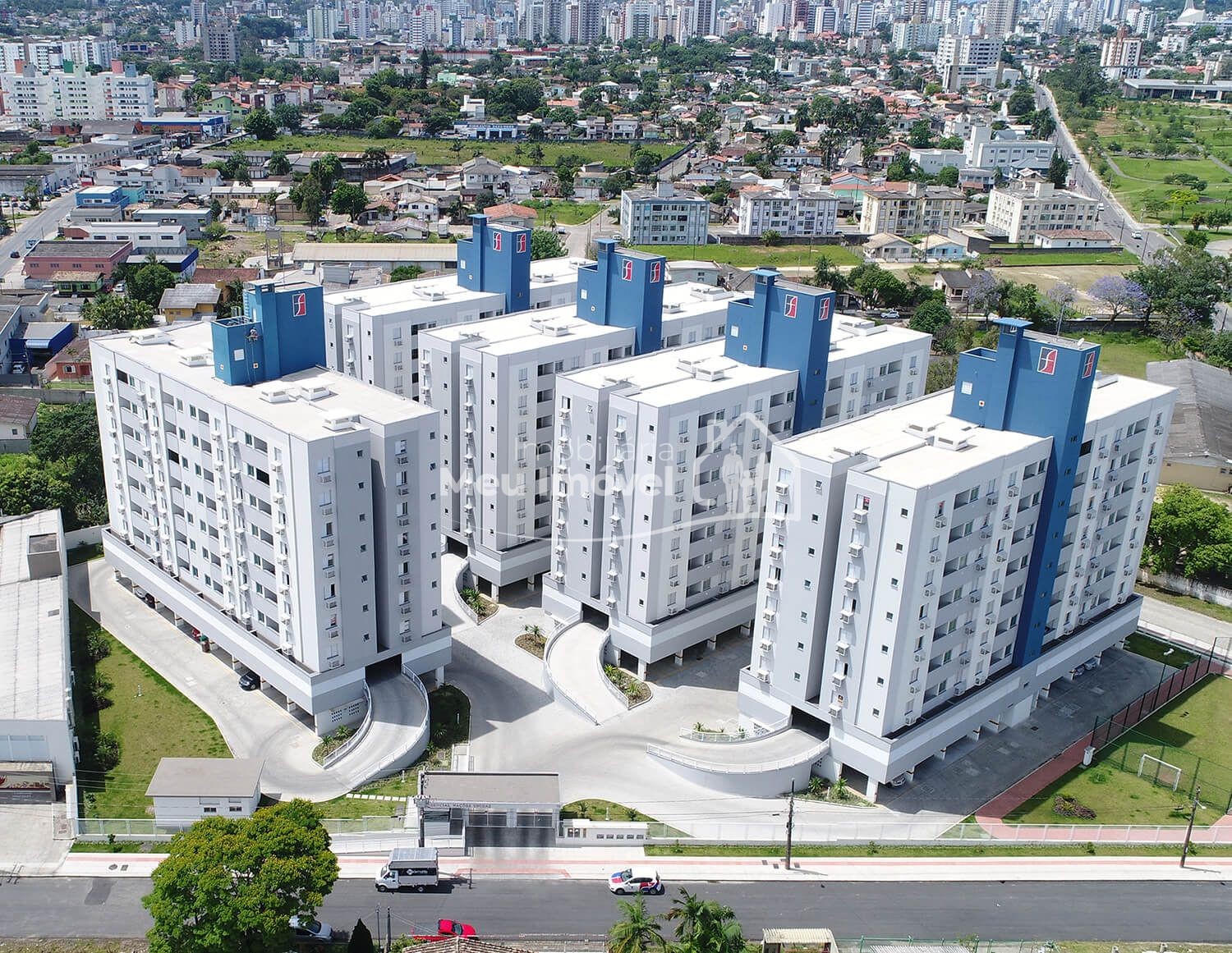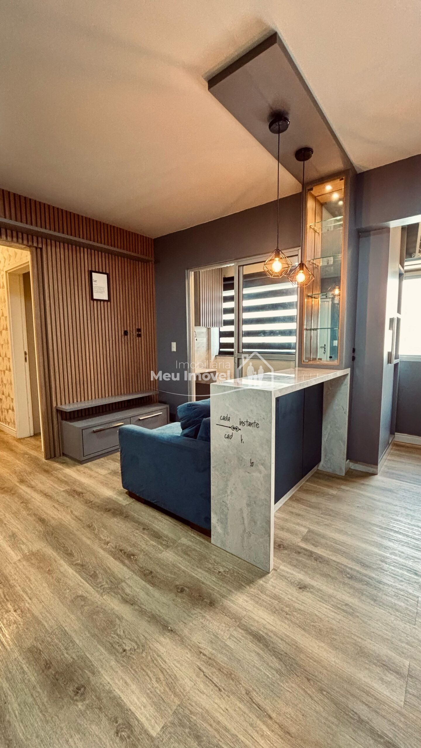 Dois dormitorios com suite, banheiro social, sala de estar/jantar, sacada e uma vaga de garagem.