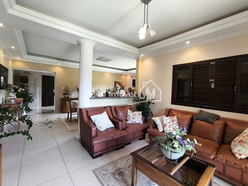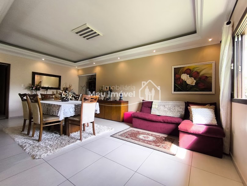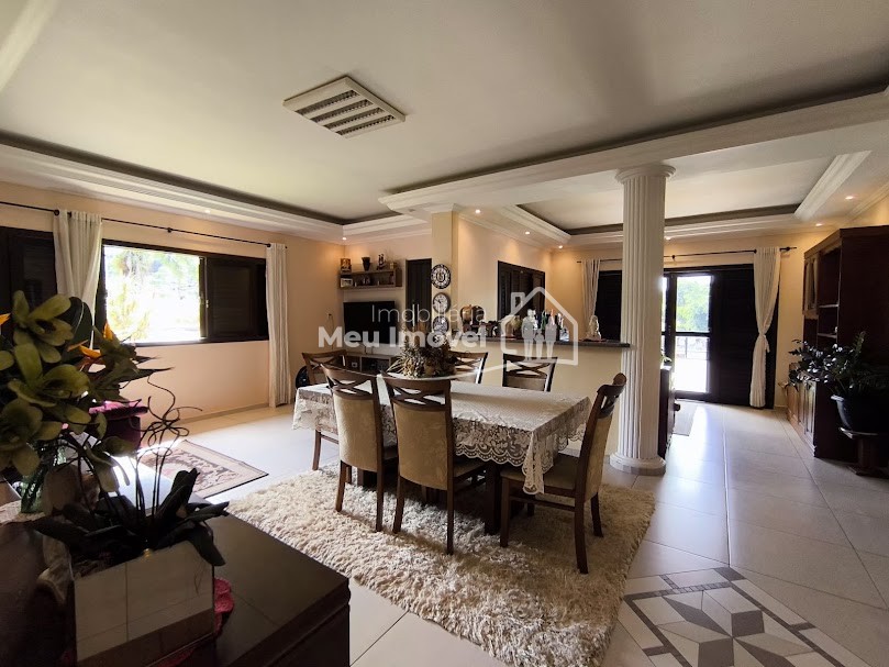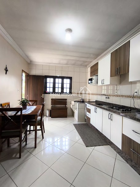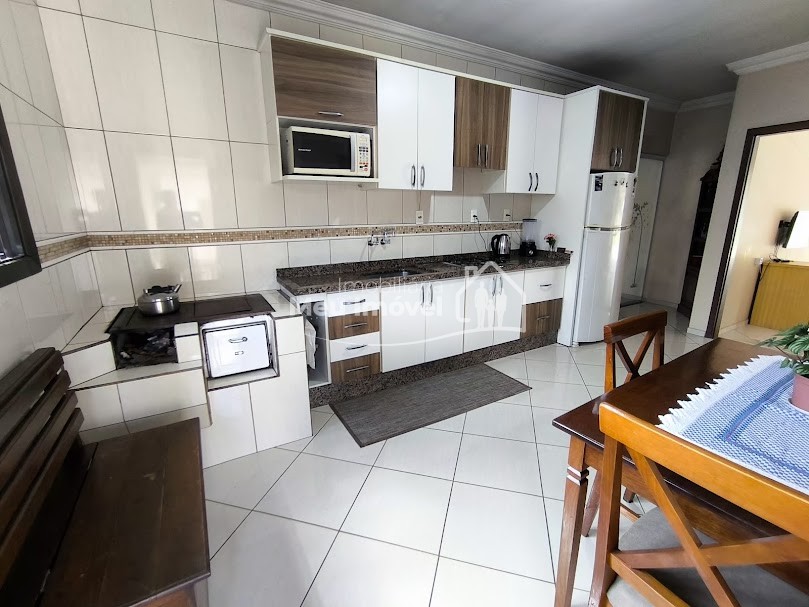 Casa toda em laje composta de 3 dormitórios sendo 1 suíte, banheiro social, cozinha com fogão a lenha, amplas salas de estar e jantar, lavanderia, depósito separado com banheiro. Garagem com amplo espaço para festas com churrasqueira a carvão
