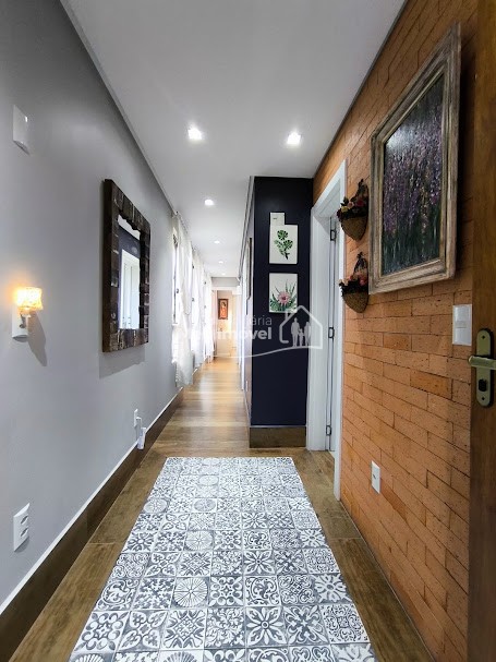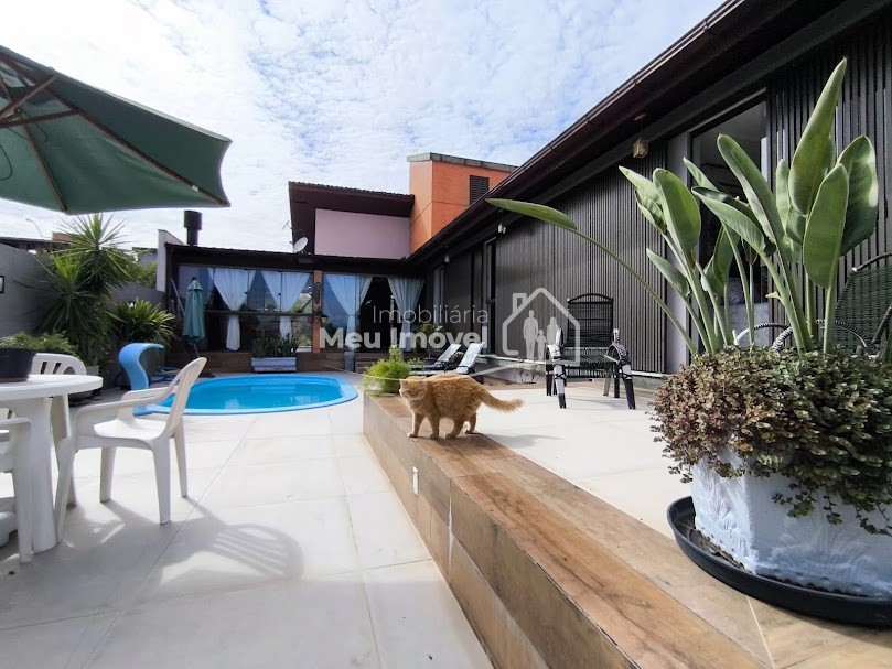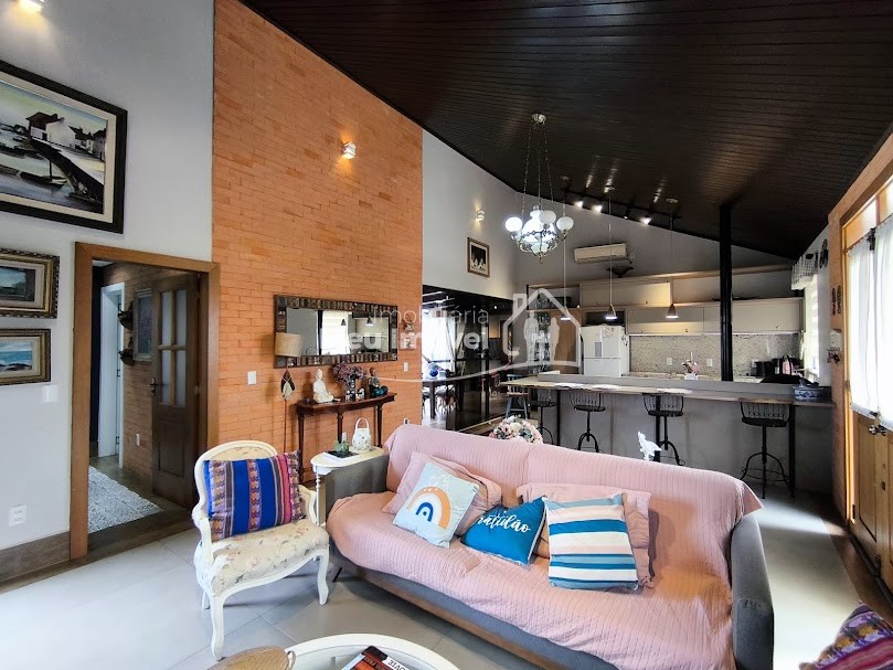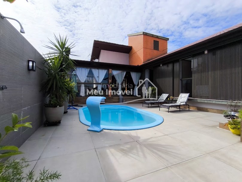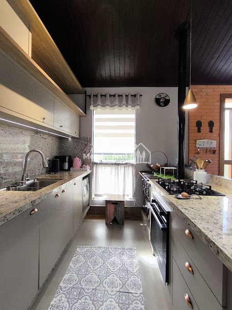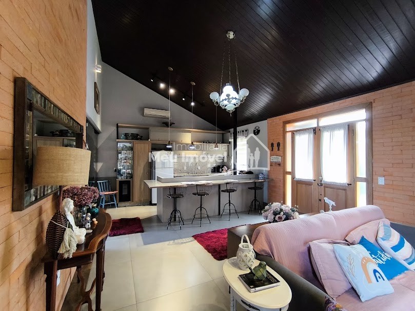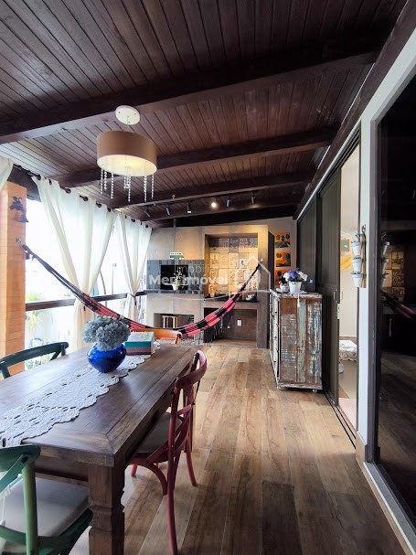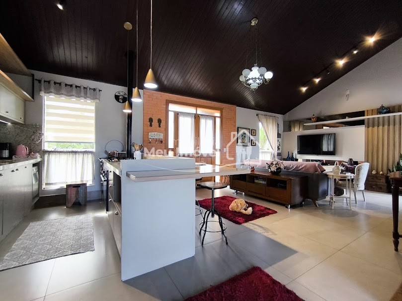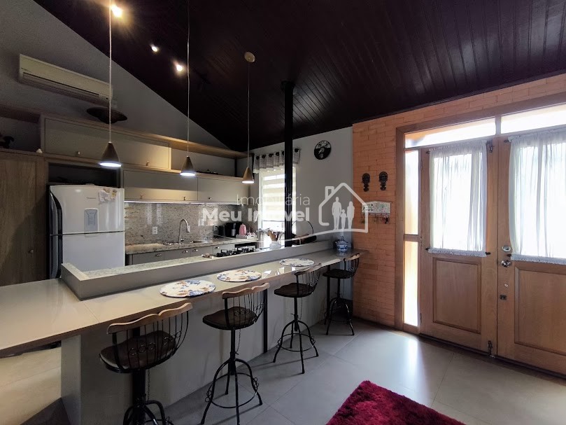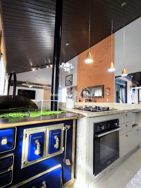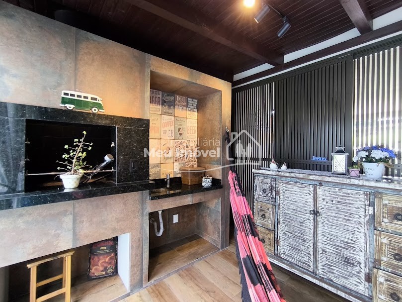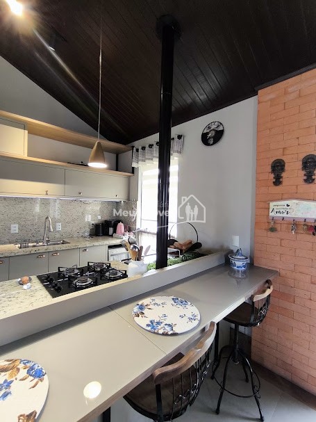 Piso superior: 3 quartos, sendo 1 suíte bem espaçosa, Banheiro social, Sala de estar integrada à cozinha com fogão a lenha, proporcionando um espaço acolhedor, Área gourmet com piscina e churrasqueira perfeita para receber amigos e família, Área de serviço