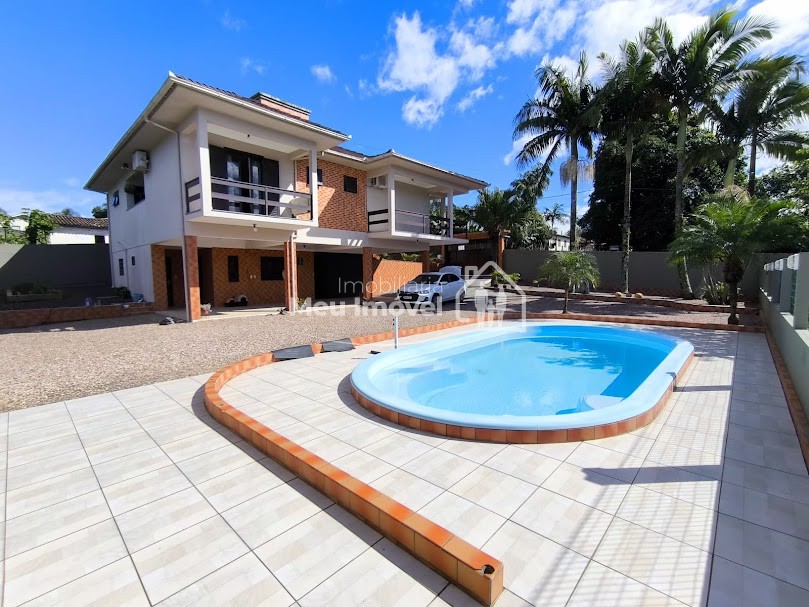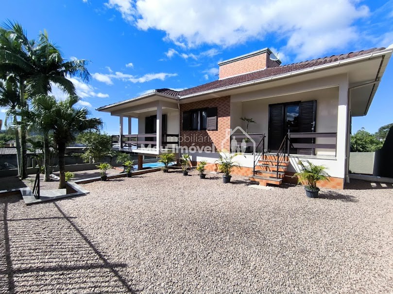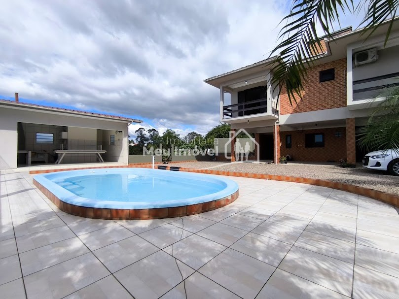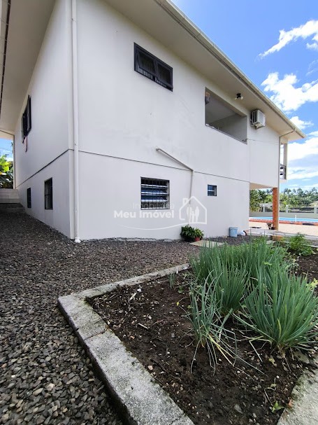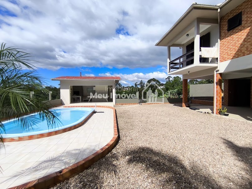 Casa muito bem construída TODA EM LAJE composta por 2 pavimentos em um AMPLO terreno: Pav Térreo: 1 dormitório ou escritório, cozinha, garagem coberta para até 5 carros, ampla área com piscina e salão de festas com churrasqueira e fogão a lenha, lavabo, horta, quintal com galinheiro e plantação de frutíferas, depósito Pav Superior: salas de tv e jantar integradas com a cozinha, 3 dormitórios sendo 2 suítes, banheiro social, lavanderia. Ótima opção para quem tem um pequeno negócio em casa e precisa de espaço extra