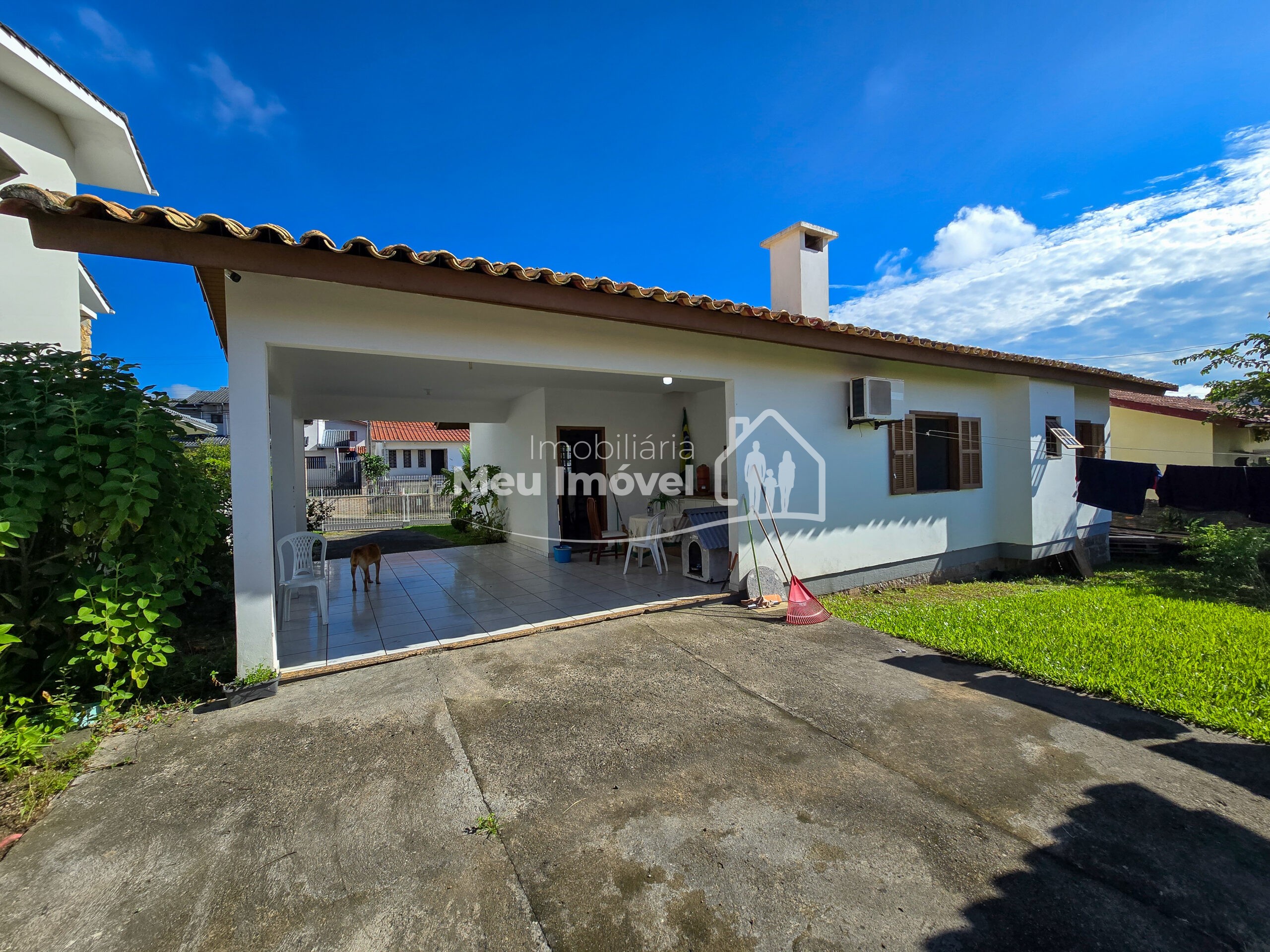 Casa composta de: 3 dormitórios sendo 1 suíte, banheiro social, sala de estar e jantar integradas , cozinha, , área gourmet com churrasqueira à carvão, lavanderia, deposito, área de apoio nos fundos, garagem coberta para 2 carros.
