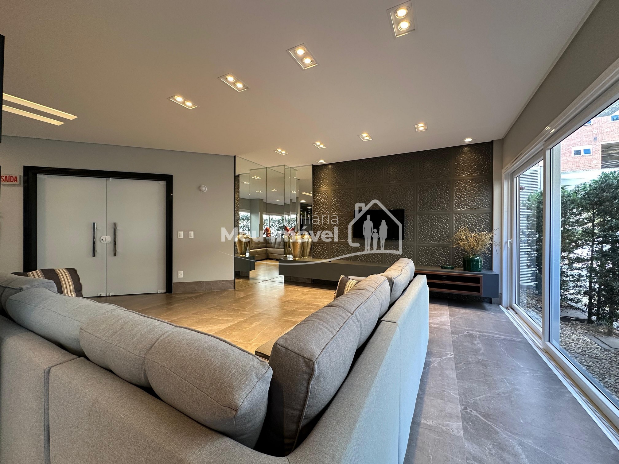 3 dormitórios (sendo 1 suíte com hidro e sacada, 1 com suíte e 1 simples com acesso a sacada), área de serviço, banheiro de serviço, despensa, banheiro social, cozinha, sala de estar/jantar conjugadas, espaço gourmet com churrasqueira a carvão, duas vagas de garagem.