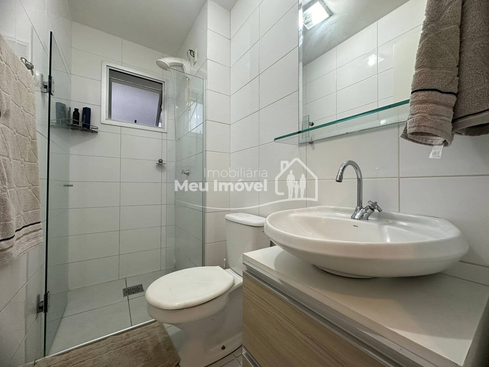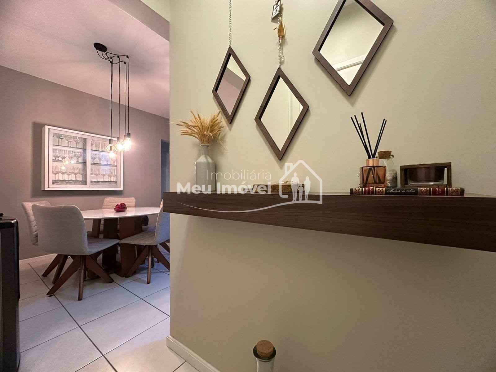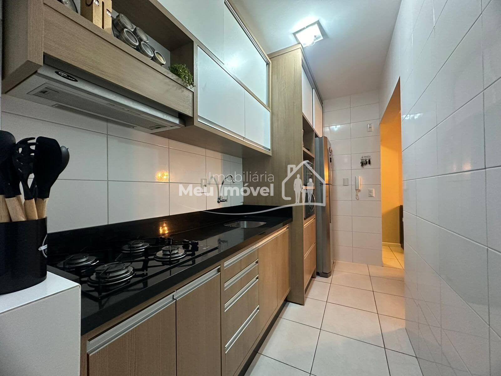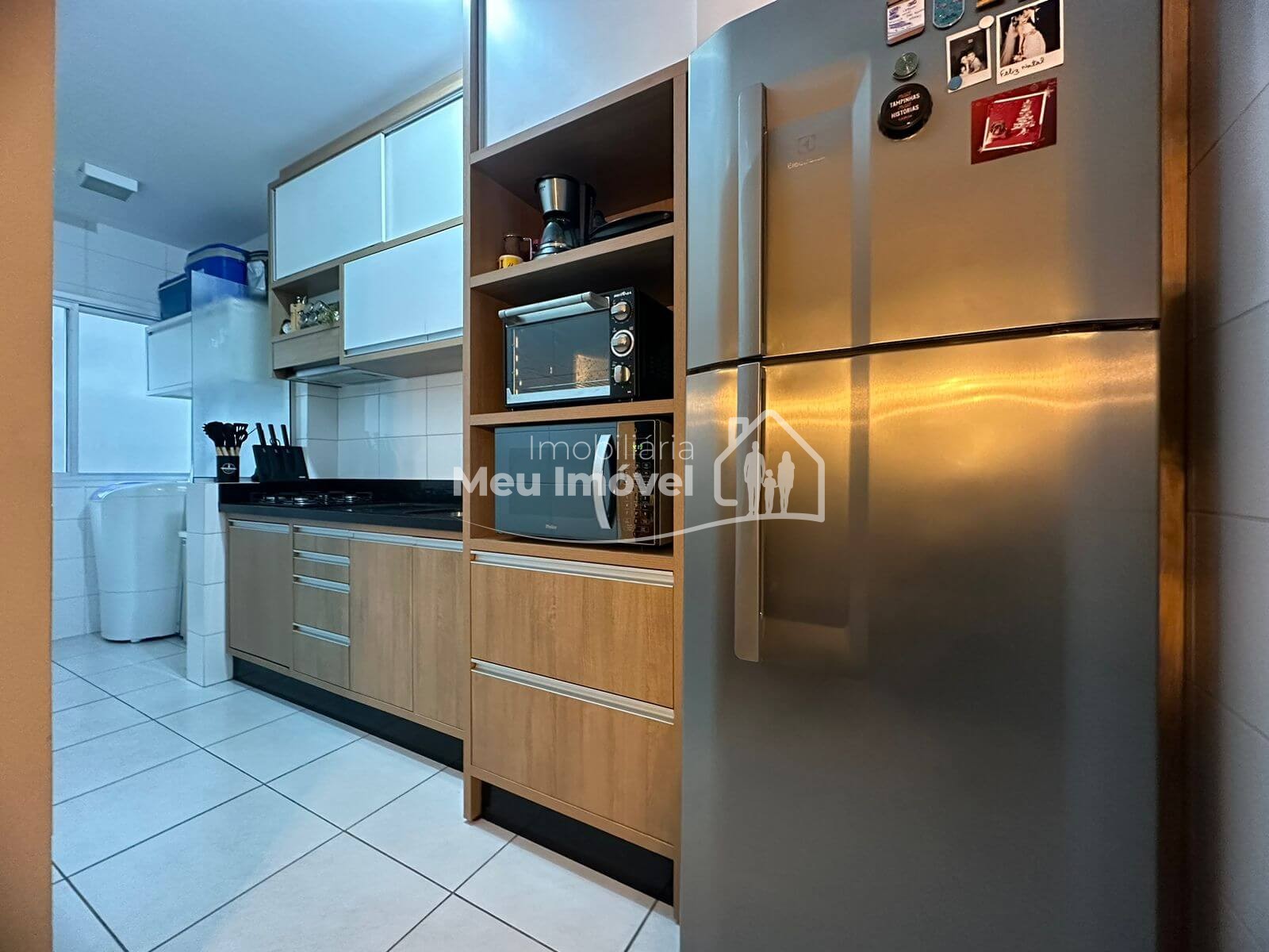 2 dormitórios (sendo 1 suíte), área de serviço, banheiro social, cozinha, sacada com churrasqueira, sala de estar/jantar conjugadas, garagem.