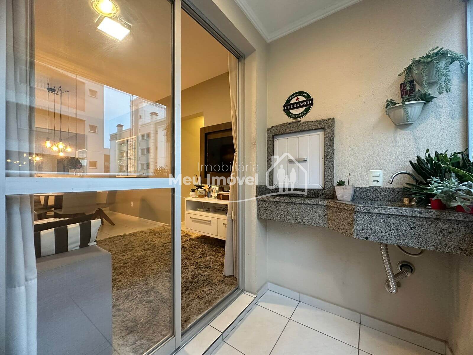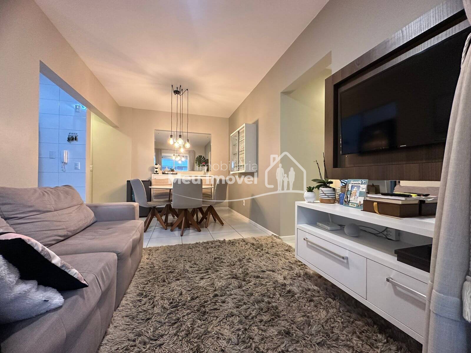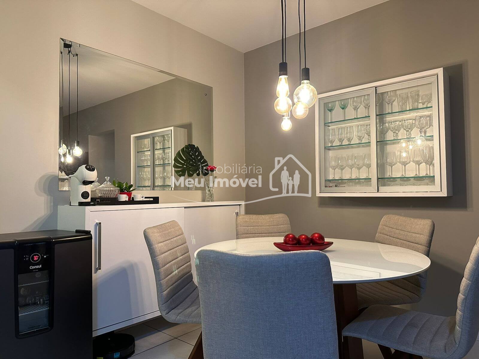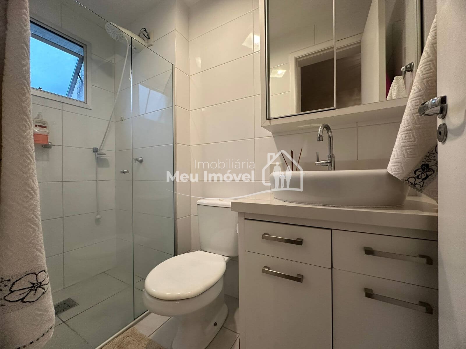 2 dormitórios (sendo 1 suíte), área de serviço, banheiro social, cozinha, sacada com churrasqueira, sala de estar/jantar conjugadas, garagem.
