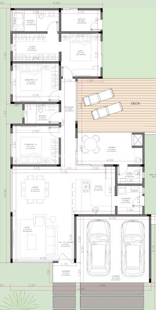 Composta por 3 dormitórios sendo 1 suíte máster com closet, salas e cozinha integradas com pé direito elevado, banheiro social, depósito, espaço gourmet com churrasqueira e lavabo (possibilidade de colocar uma piscina, não inclusa no valor do anúncio) lavanderia com acesso para rua, garagem para 2 carros. OBS: Vai ser entregue praticamente pronta para você só planejar os móveis e morar, será entregue com grama, iluminação, espera para automação via Alexia, interruptores digitais, espera para água quente.